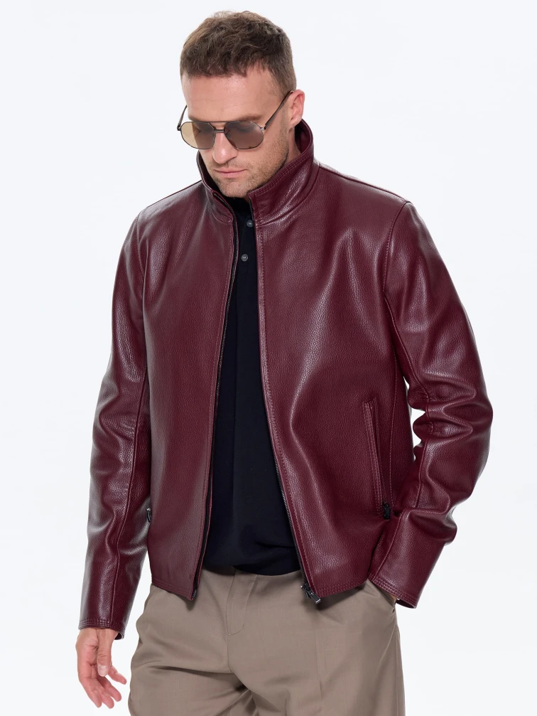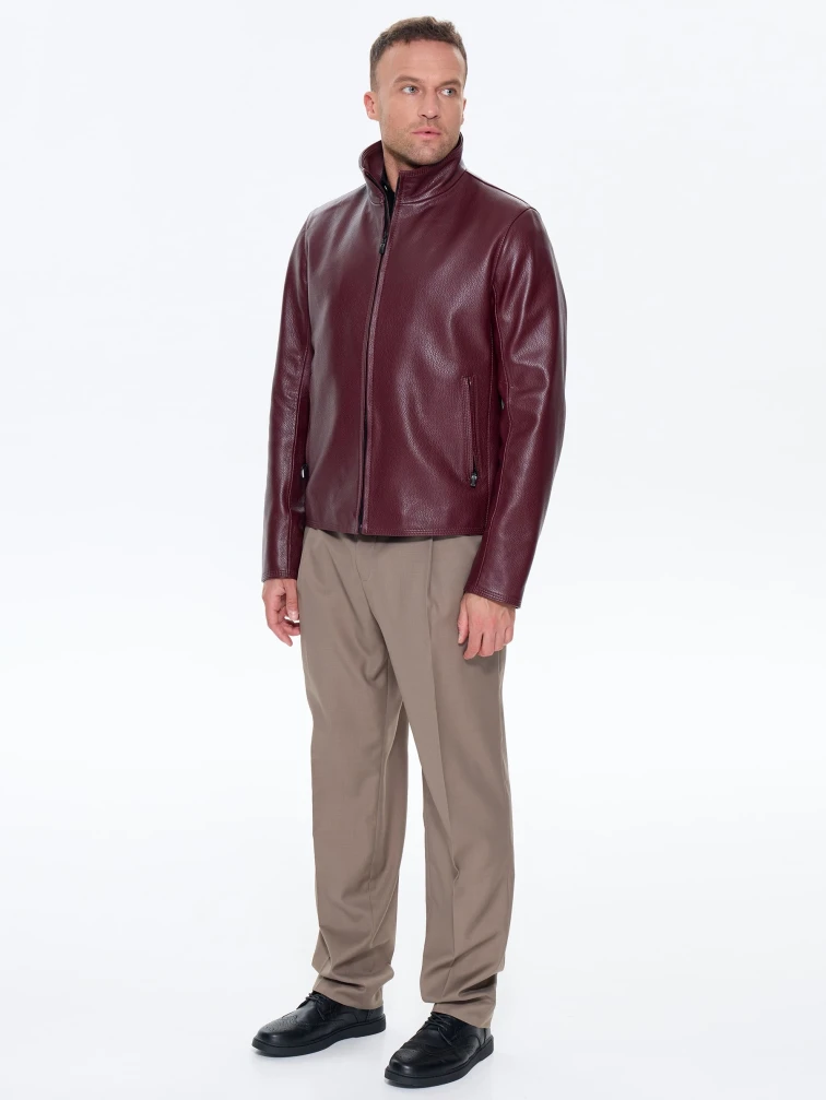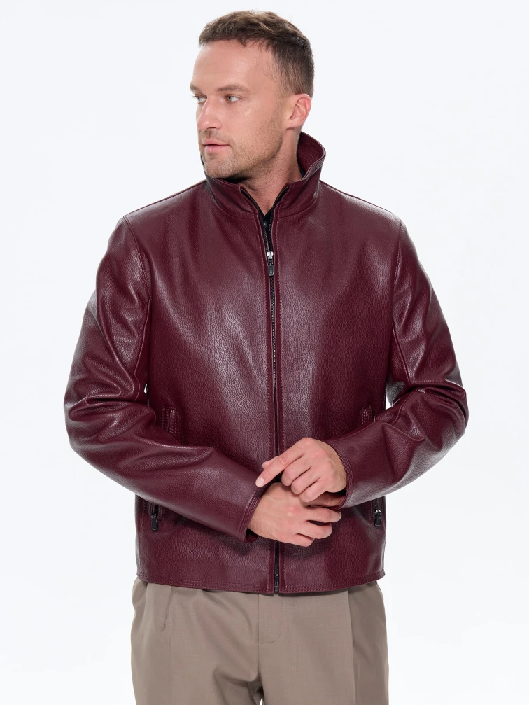 Товар бордовая мужская кожаная куртка 2010-9, размер 48, артикул 29780 выполнен из натуральной кожи с застежкой молния. Рассчитан на сезон: весна-осень. Длина изделия 65 см, силуэт полуприлегающий.