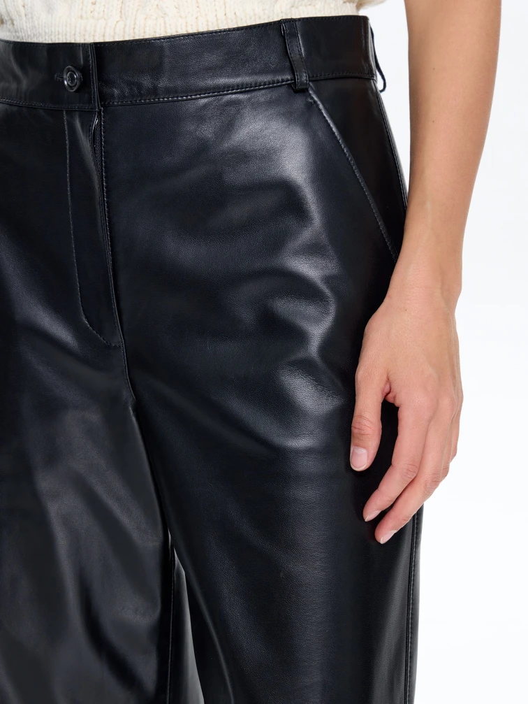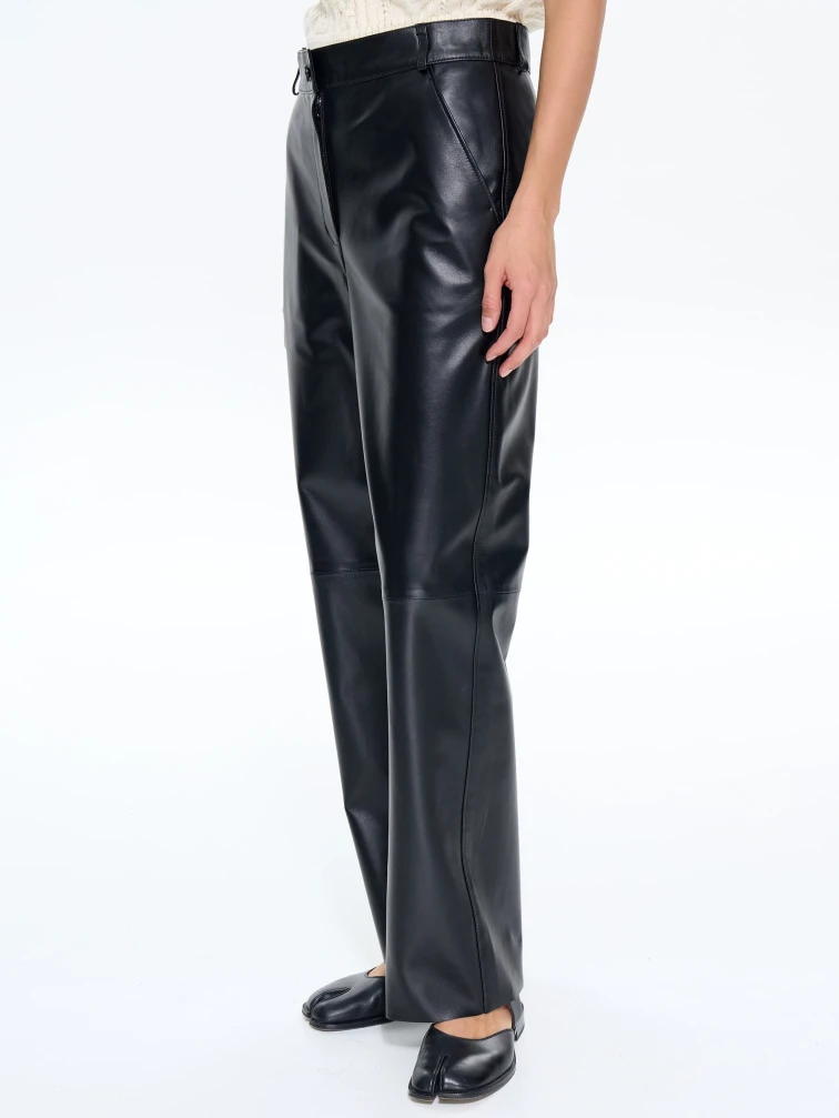 Брюки женские из натуральной кожи 10, черный, размер 46, артикул 86050