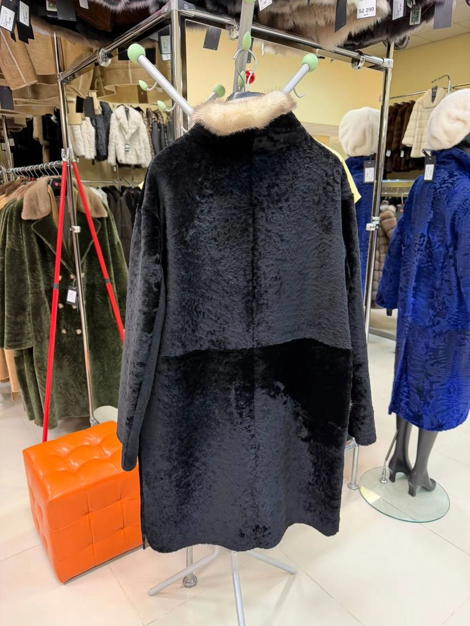 Товар черная женская дубленка из астрагана с мехом норки премиум класса 2018, размер 44, артикул 65140 выполнен из овчина "астраган" с застежкой молния. Рассчитан на сезон: осень-зима. Длина изделия свыше 90 см, силуэт прямой.