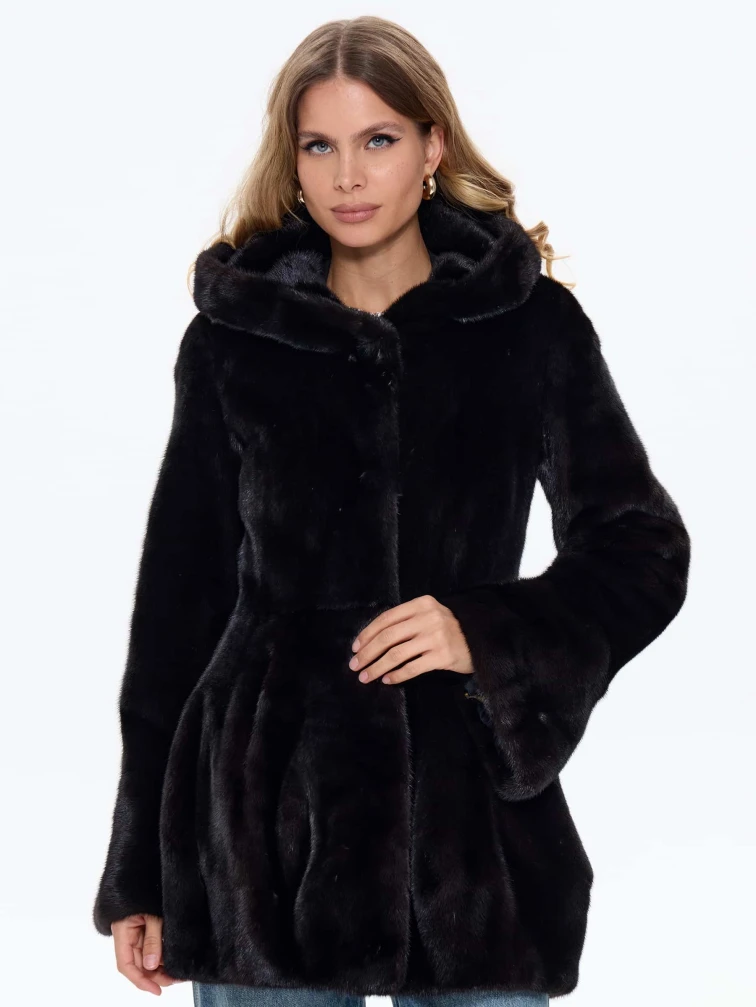 Черная женская норковая шуба BRASCHI Н 717, размер 44, артикул 34410