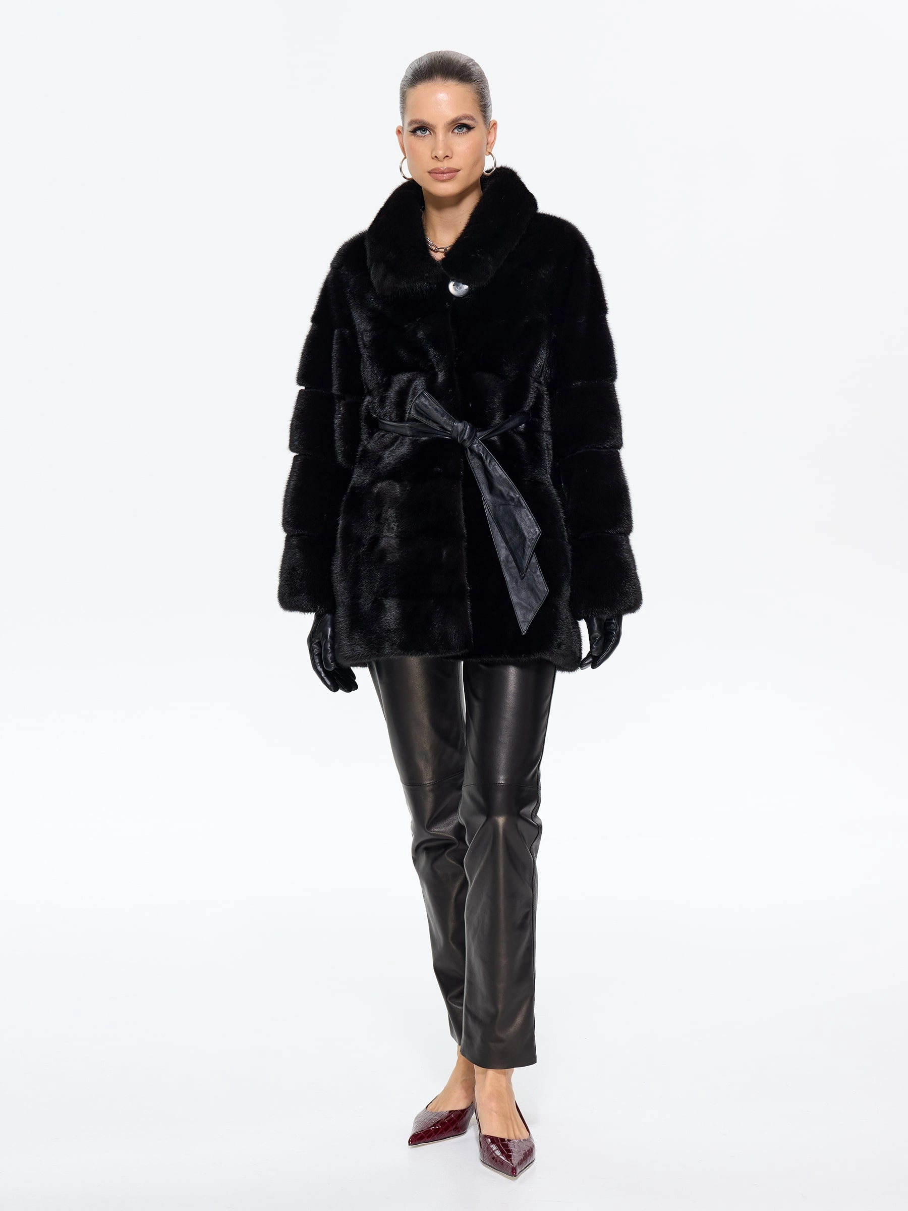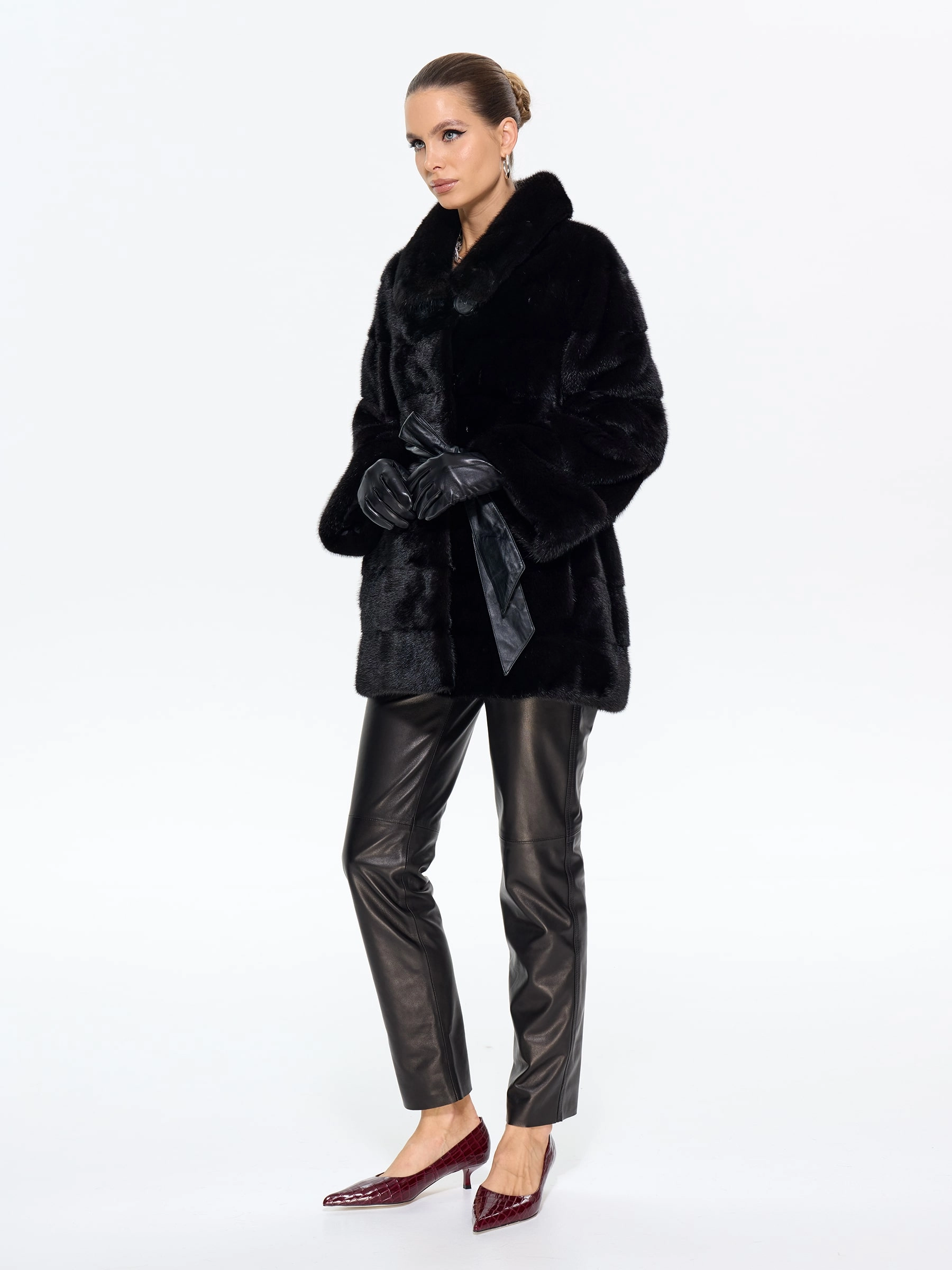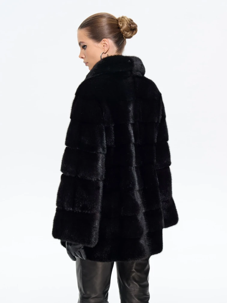 Черная женская норковая шуба MANAKAS 2478, размер 38, артикул 34260