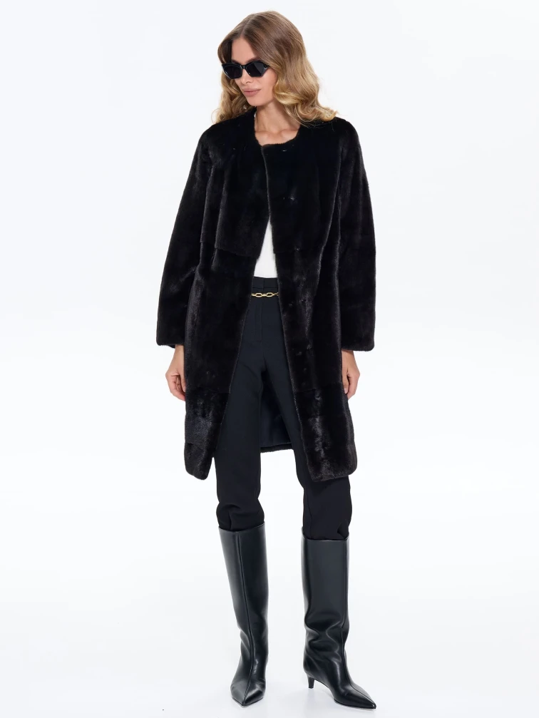 Черная женская шуба из меха норки BRASCHI NJ 13, размер 42, артикул 34370