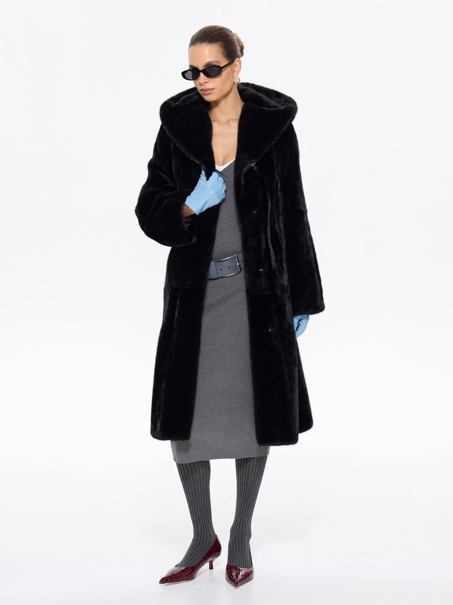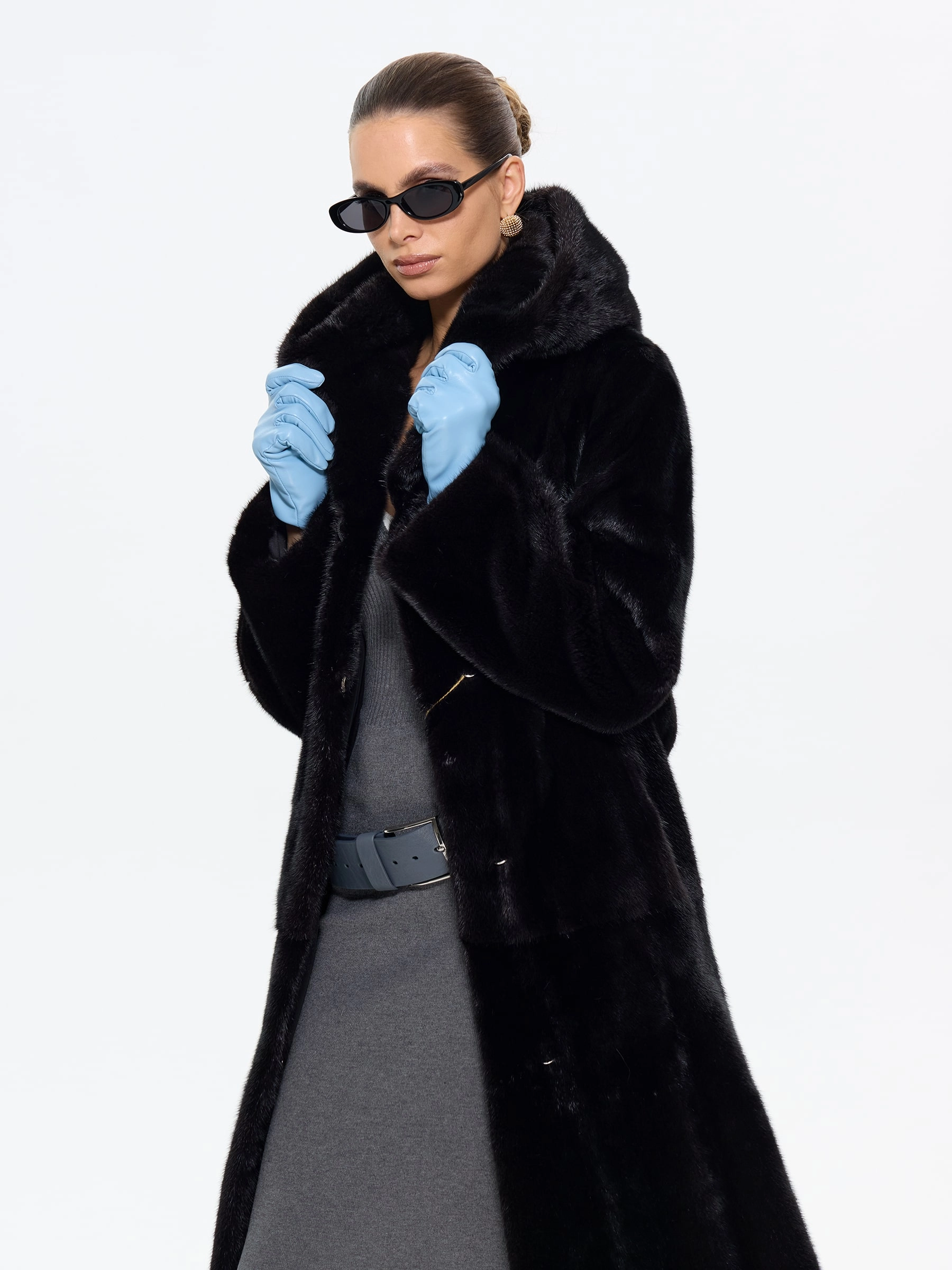 Длинная женская норковая шуба MANZARI М069, черная, размер 40, артикул 34250