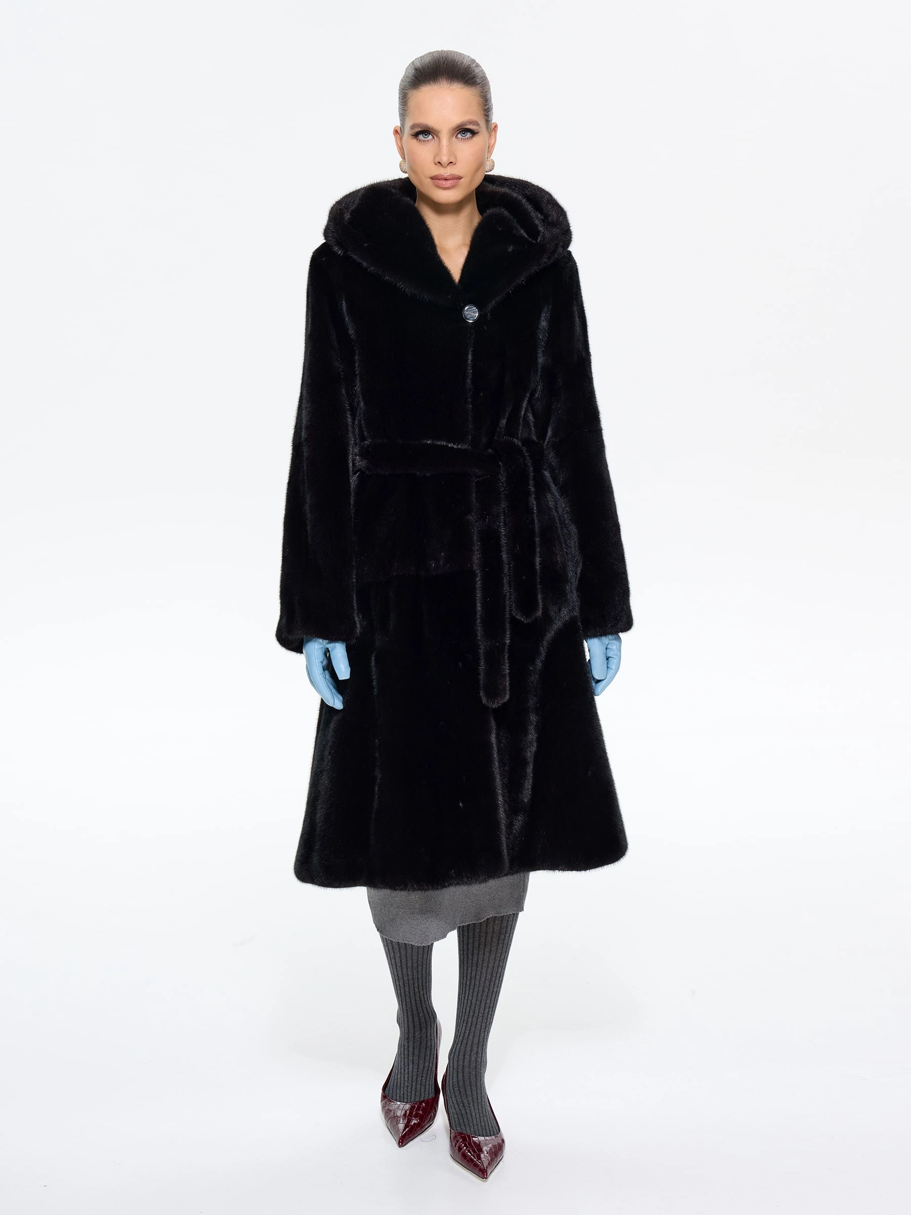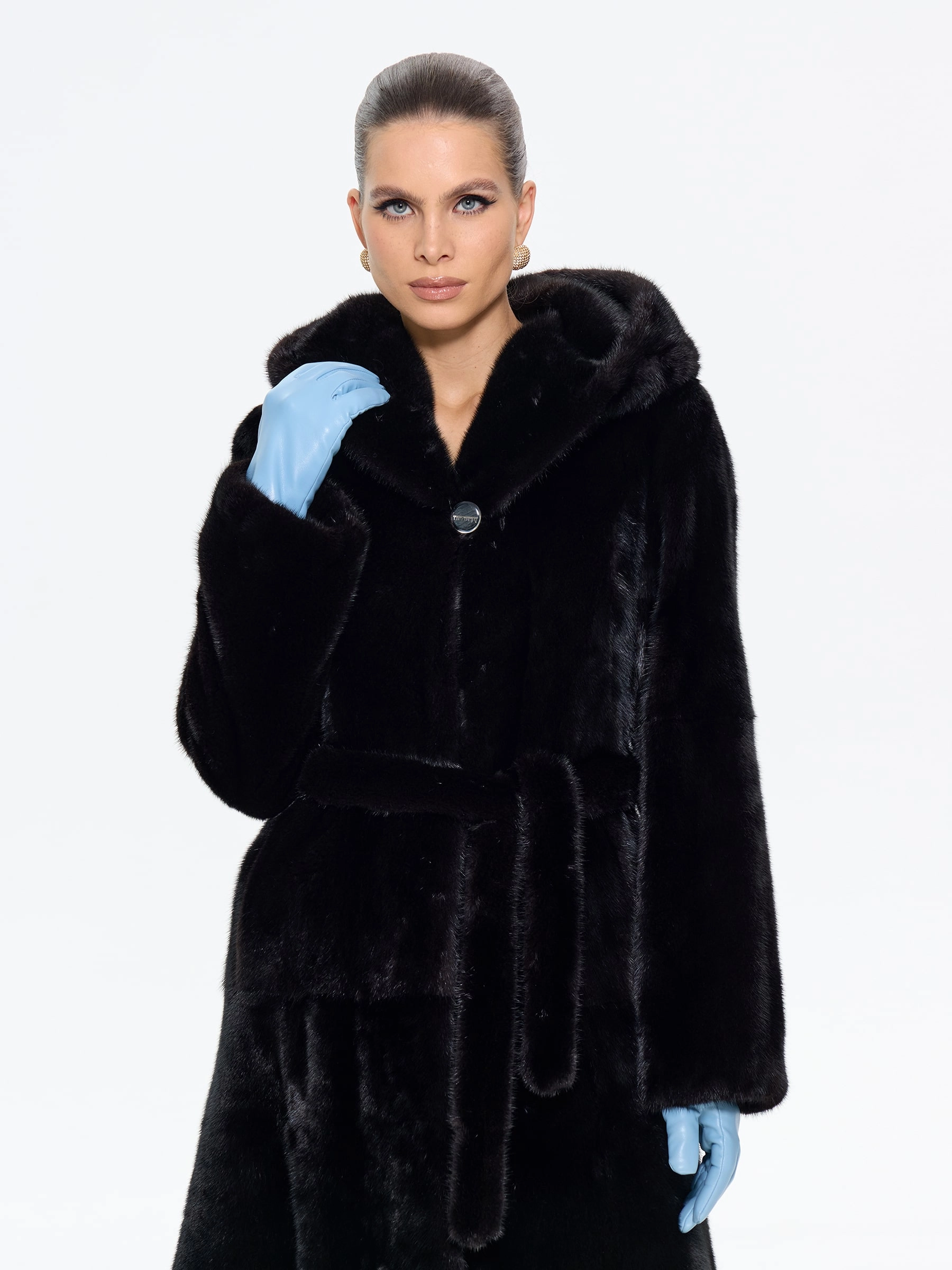 Эту классическую шубу с безупречной посадкой изготовили из густого шелковистого меха норки с идеально равномерным ворсом. Элегантная длина до середины бедер создает стройный силуэт. Приталенный крой мягко подчеркивает талию, сохраняя женственные пропорции, а глубокий капюшон надежно защищает от непогоды. Лаконичный дизайн без лишних деталей подчеркивает благородство натурального меха. Удобные клипсы-застежки легко фиксируются и берегут мех. MANZARI — мех, который говорит о вашем вкусе без слов.