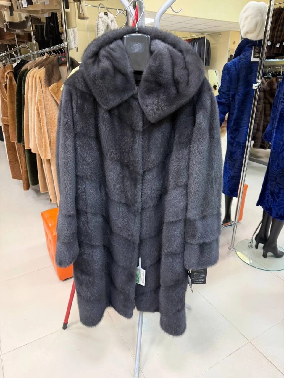 Товар длинная женская норковая шуба с капюшоном москвичка-132, графитовая, размер 52, артикул 65390 выполнен из мех норки с застежкой клипсы. Рассчитан на сезон: зима. Длина изделия 110 см, силуэт прямой.