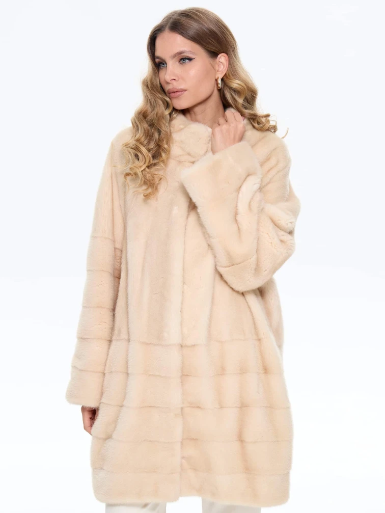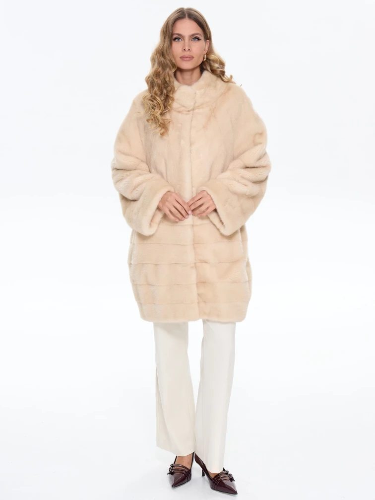 Комбинированная женская норковая шуба BRASCHI МS 093.1, бежевая, размер 46, артикул 34320