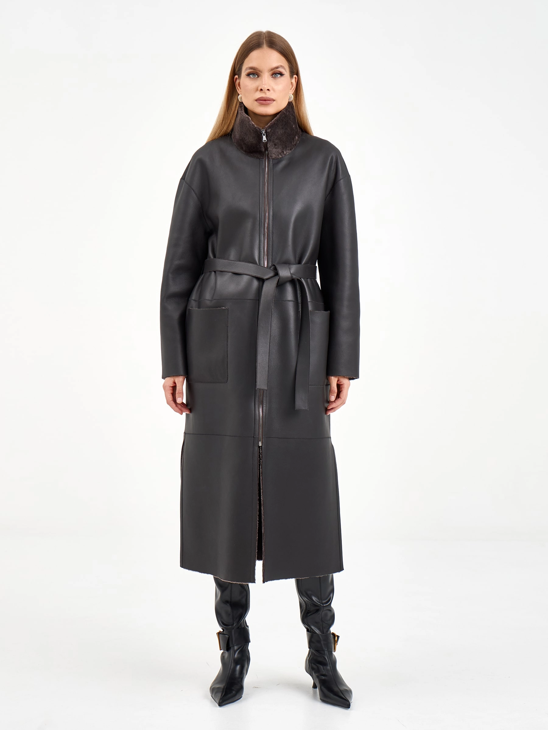Элегантная модель прямого кроя с боковыми разрезами и длинным поясом, который подчеркивает талию. Глубокий капюшон и спущенный рукав создают современный силуэт, а накладные карманы добавляют практичности. Стилисты рекомендуют носить с узкими джинсами, водолазкой и ботинками челси для создания стильного образа с ноткой уверенности — идеальный вариант для повседневной носки с элементами городского драйва и расслабленной грации.