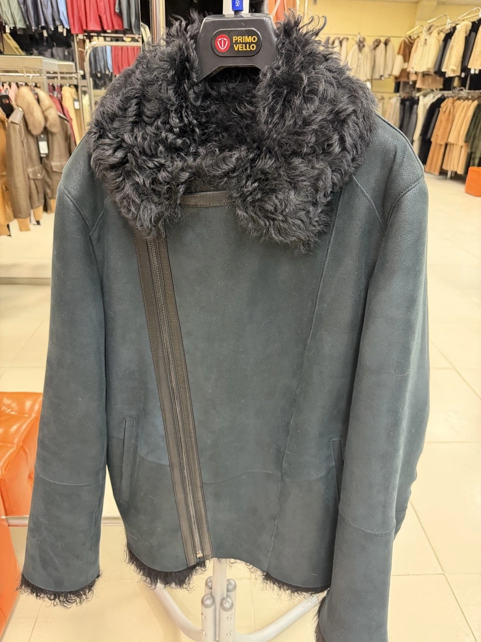 Товар короткая мужская дубленка-косуха премиум класса 446, синяя, размер 50, артикул 29800 выполнен из овчина " тиградо" с застежкой молния. Рассчитан на сезон: зима. Длина изделия 70 см, силуэт прямой.