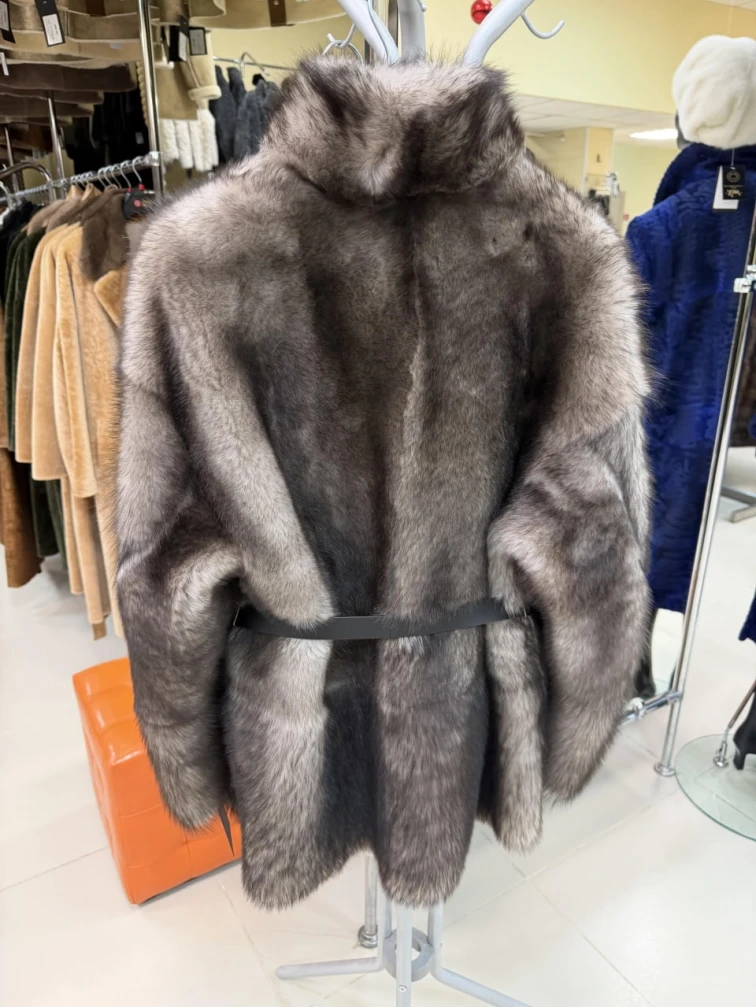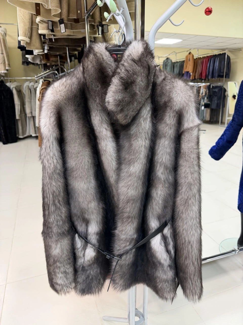Товар короткая женская дубленка 2072, cерая, размер 42, артикул 64960.
