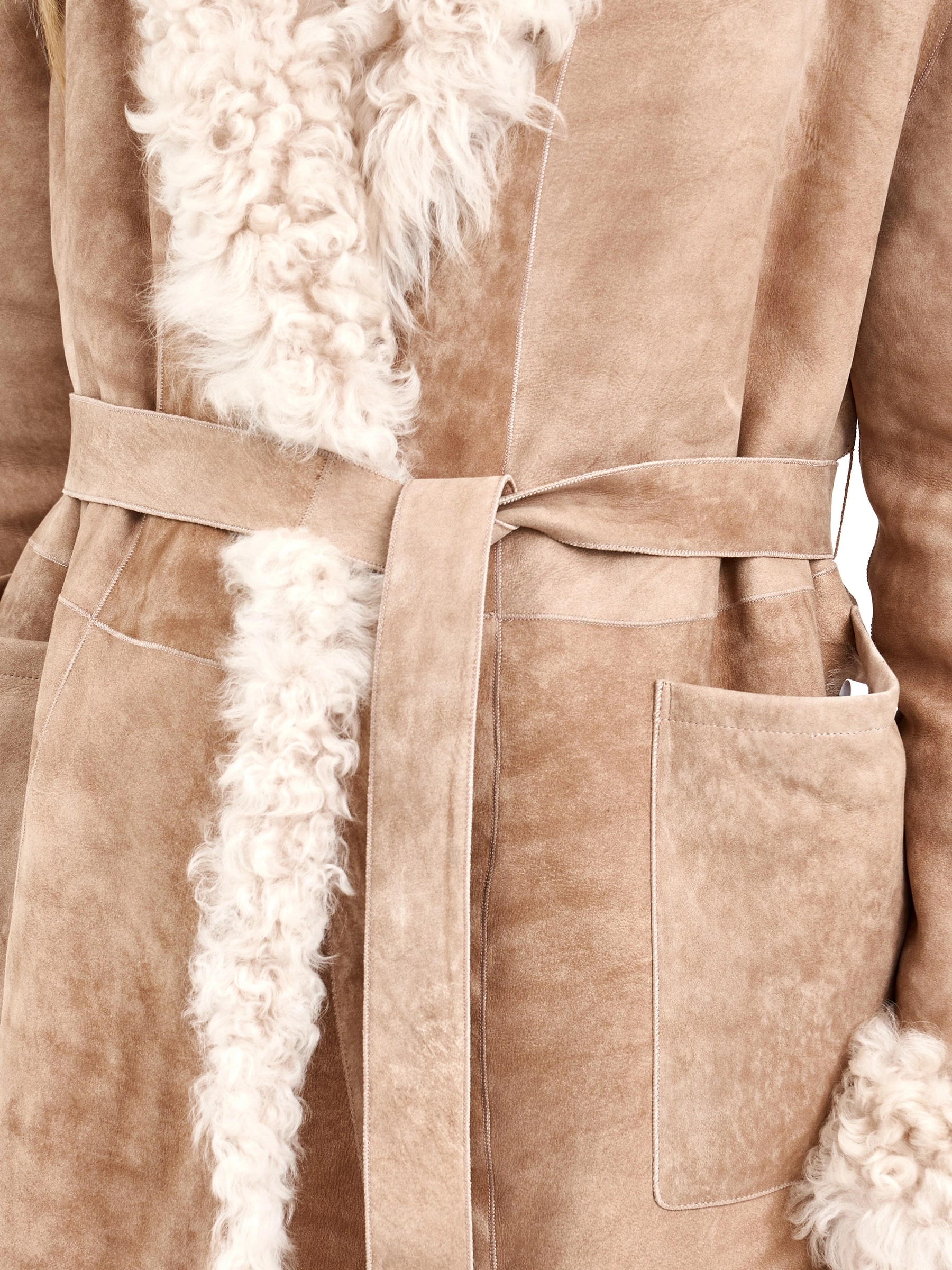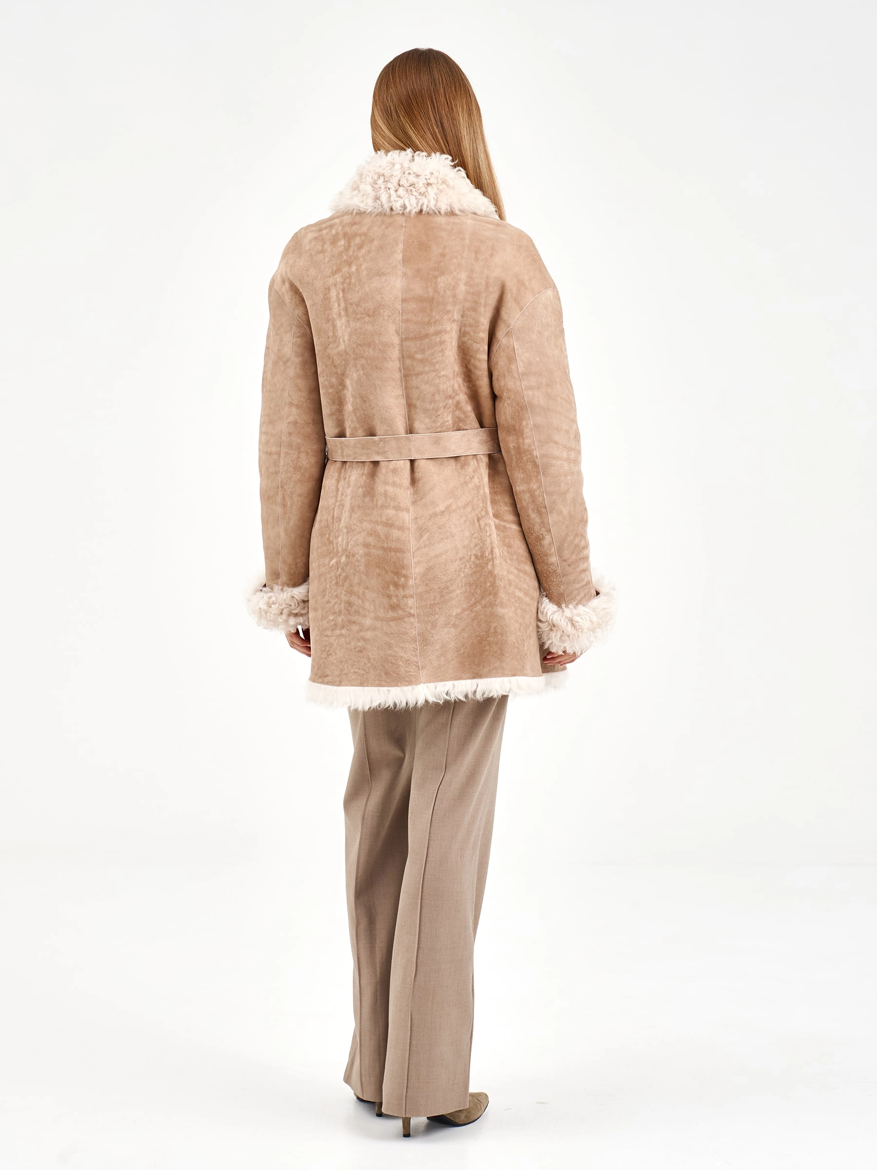 Короткая дубленка из роскошной овчины "тиградо" с эффектным шалевым воротником. Модель свободного кроя длиной 80 см с запахом и спущенным рукавом подчеркивает непринужденную элегантность - дубленка фиксиется длинным поясом, создавая выразительный силуэт, и дополнена практичными накладными карманами. Стилисты рекомендуют носить ее с однотонными комплектами - платьями-миди, узкими джинсами или кюлотами с высокими сапогами, чтобы подчеркнуть богатую текстуру меха. Идеальное решение для тех, кто ценит уют и яркие акценты в повседневном гардеробе.