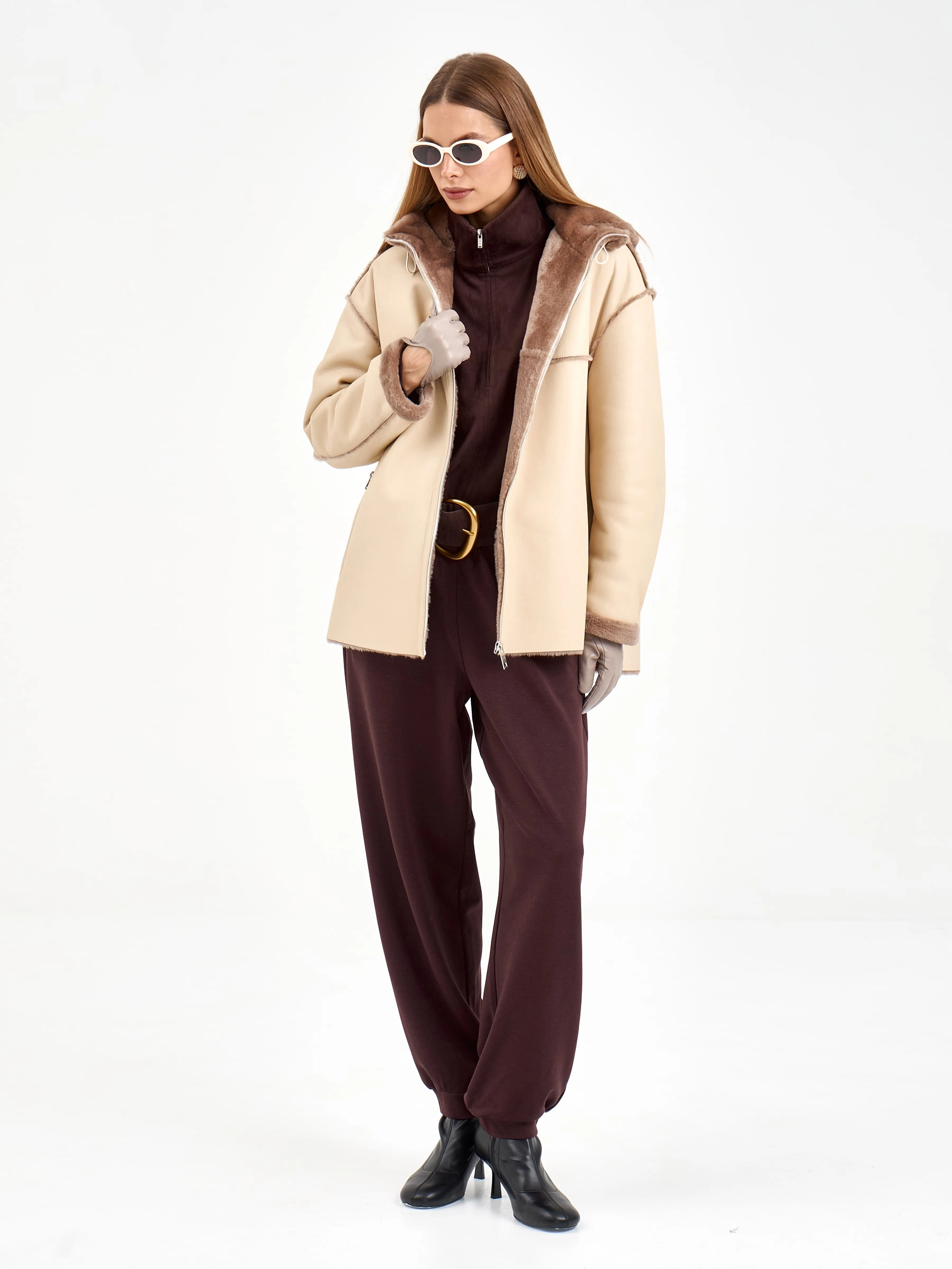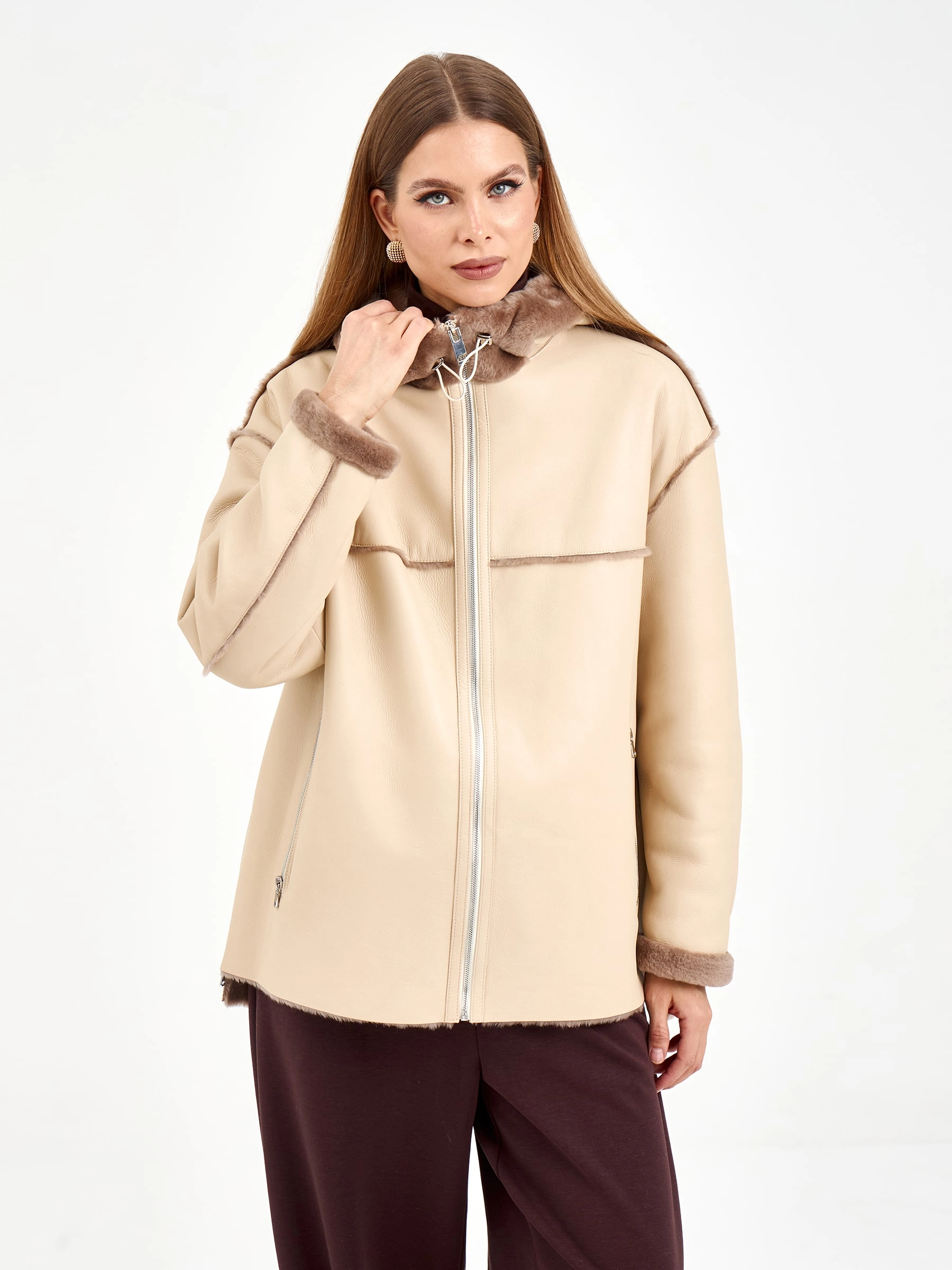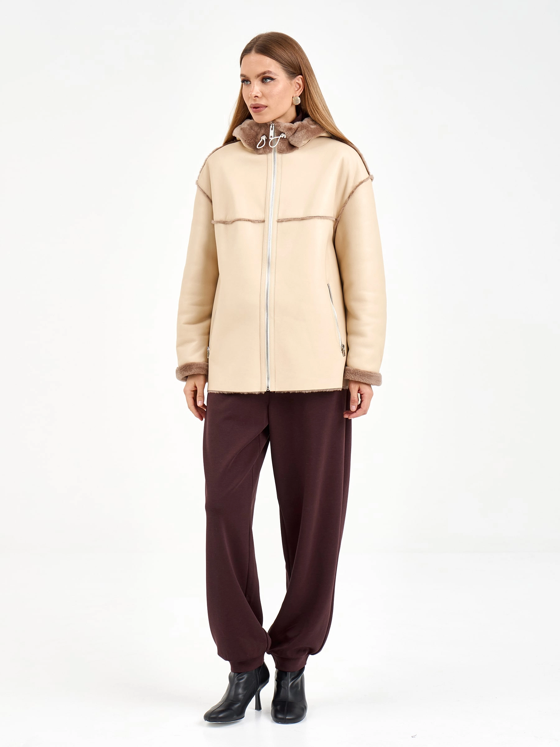 Короткая дубленка с капюшоном из премиальной овчины мерино свободного кроя. Модель длиной 75 см с несъемным капюшоном и спущенным рукавом создает элегантный повседневный образ. Застежка-молния, боковые разрезы и практичные врезные карманы. Стилисты рекомендуют носить с объемными свитерами, джинсами-скинни и ботильонами для создания модного лука. Идеальное сочетание уюта, стиля и городской эстетики.