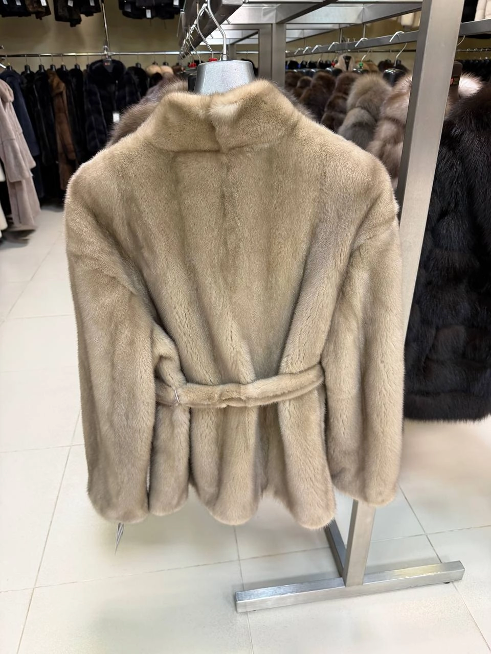 Товар короткая женская норковая шуба м-102-2252, бежевая, размер 48, артикул 65690 выполнен из мех норки с застежкой клипсы. Рассчитан на сезон: зима. Длина изделия 75 см, силуэт прямой.