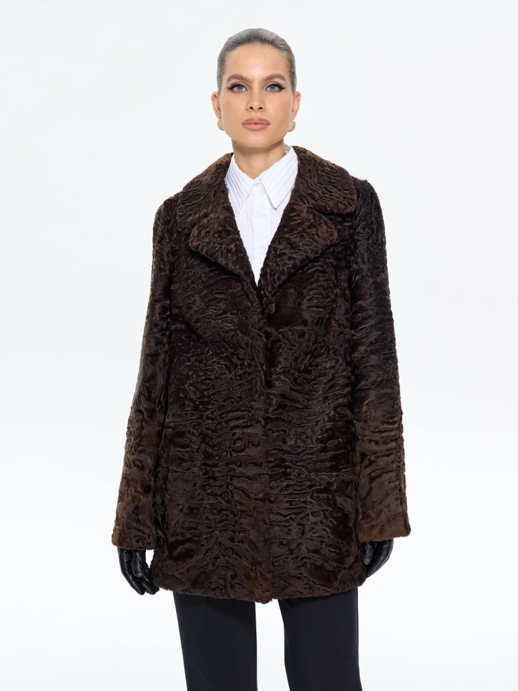 Короткая женская шуба из меха каракульчи Алиса, коричневая, размер 48, артикул 65560