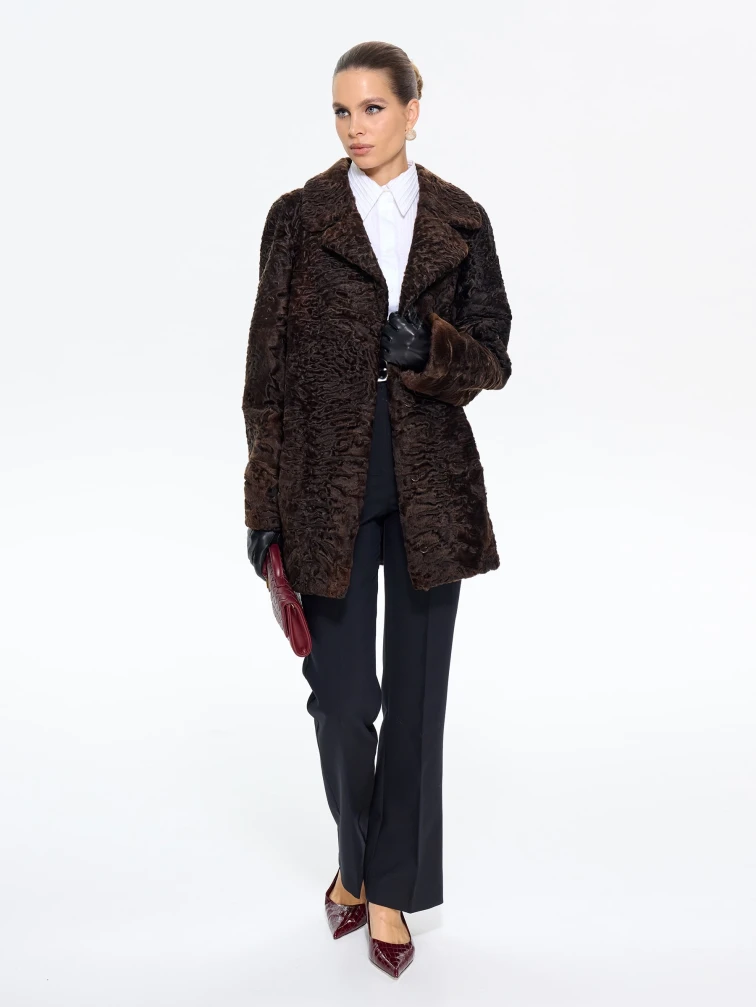 Товар короткая женская шуба из меха каракульчи алиса, коричневая, размер 48, артикул 65560 выполнен из мех каракульчи с застежкой клипсы. Рассчитан на сезон: весна-осень. Длина изделия 80 см, силуэт прямой.