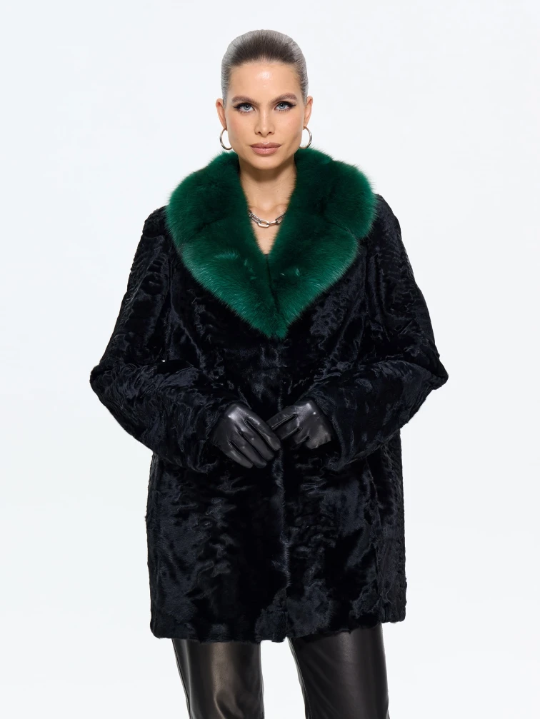 Товар короткая женская шуба из меха каракульчи ирэн, черная, размер 48, артикул 65550 выполнен из мех каракульчи с застежкой клипсы. Рассчитан на сезон: весна-осень. Длина изделия 80 см, силуэт прямой.