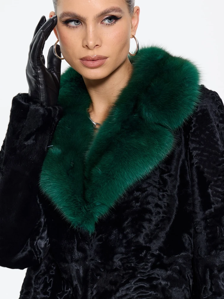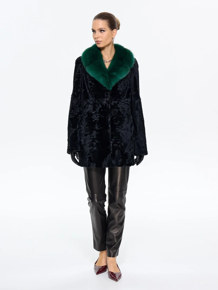 Короткая женская шуба из меха каракульчи Ирэн, черная, размер 48, артикул 65550