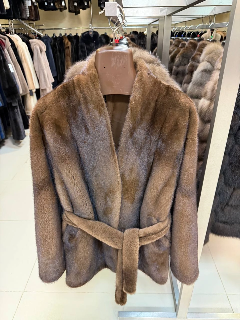 Знаковая короткая шуба прямого кроя из густого меха норки премиум-класса с элегантным V-образным воротником. Силуэт длиной 75 см со спущенными рукавами и регулируемыми кулисками по низу подчеркивает классическую роскошь, а широкий меховой пояс позволяет менять образ. Стилисты рекомендуют носить ее поверх тонких водолазок и кожаных брюк, с платьем-футляром или джинсами с кашемировым свитером — это вневременной шик, излучающий уверенность и тепло. Скрытые магнитные карманы и застежка-клипсы завершают безупречную деталировку этой модели. Идеальное сокровище для современной женщины, ценящей безупречный крой и благородную текстуру.
