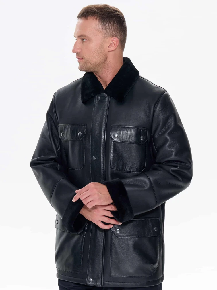 Молодежная мужская дубленка премиум класса 440, черная, размер 48, артикул 41220