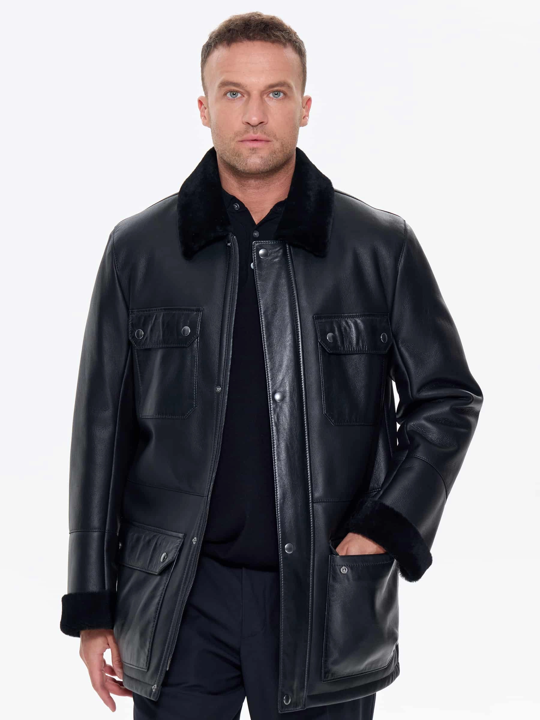 Товар молодежная мужская дубленка премиум класса 440, черная, размер 48, артикул 41220 выполнен из овчина "мерино" с застежкой молния+кнопки. Рассчитан на сезон: зима. Длина изделия 81 см, силуэт прямой.