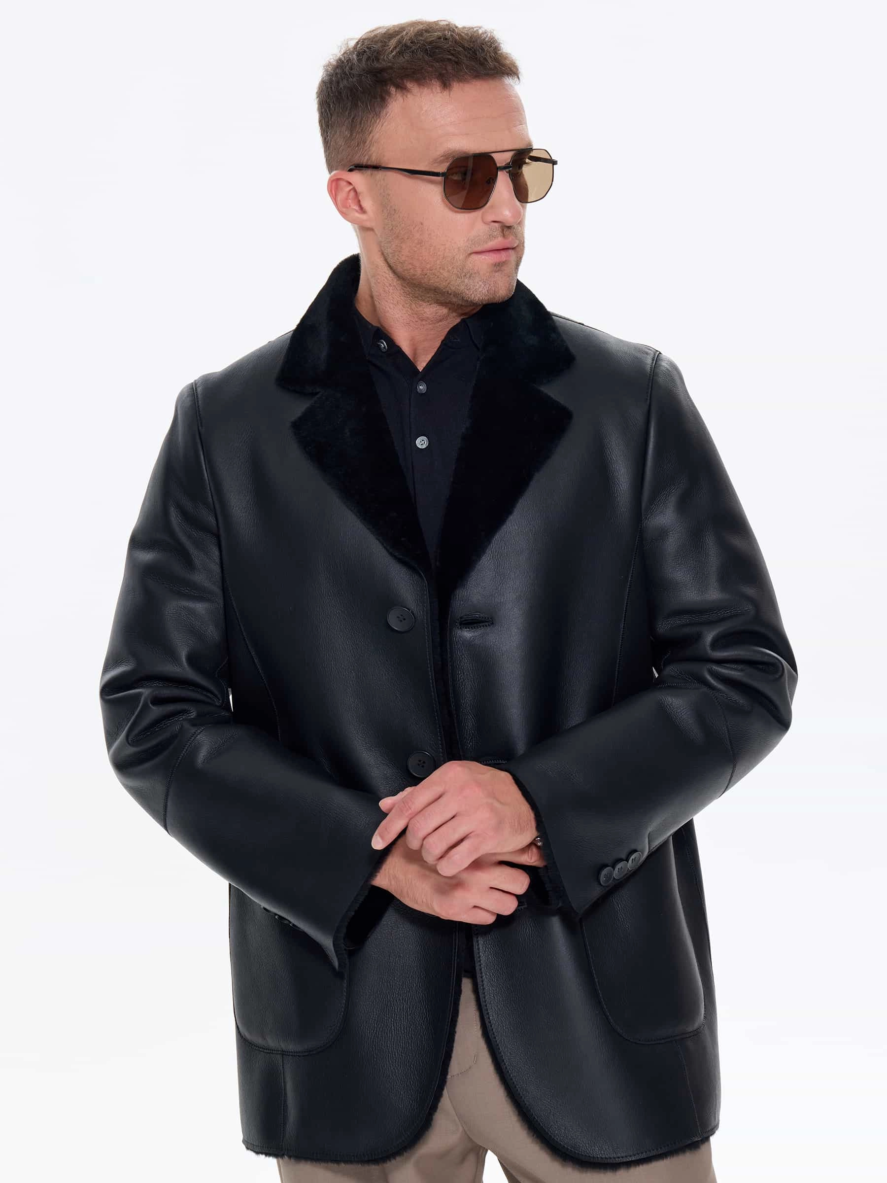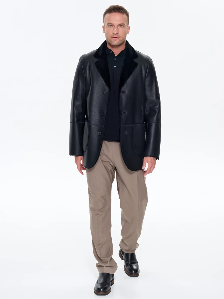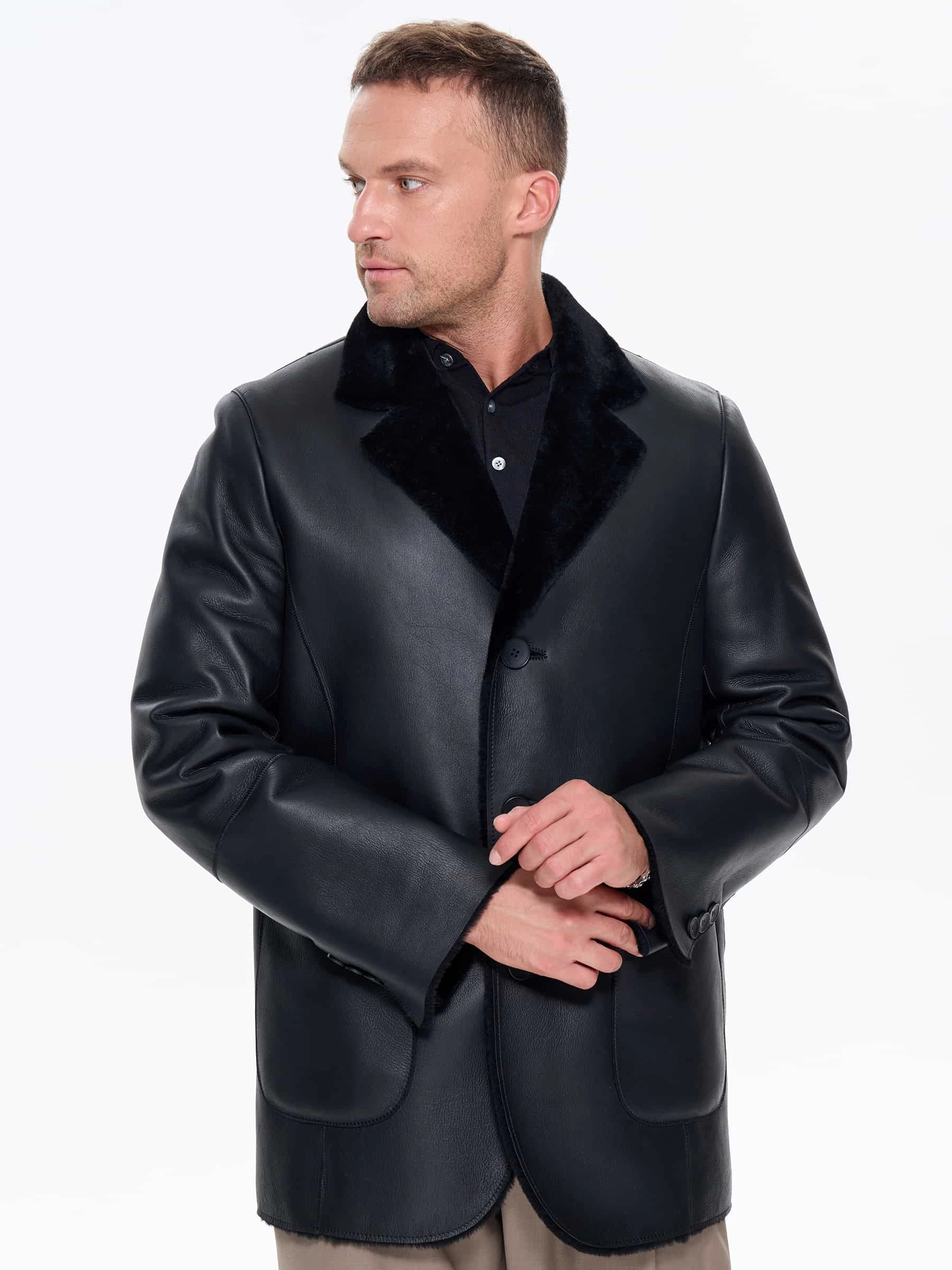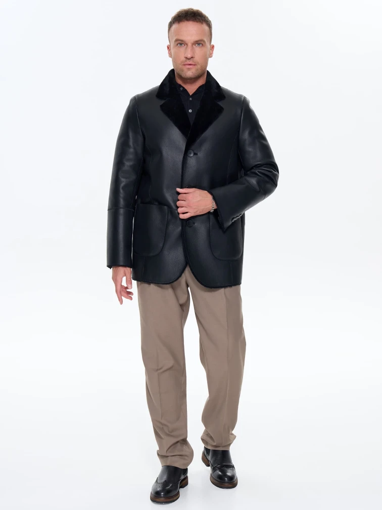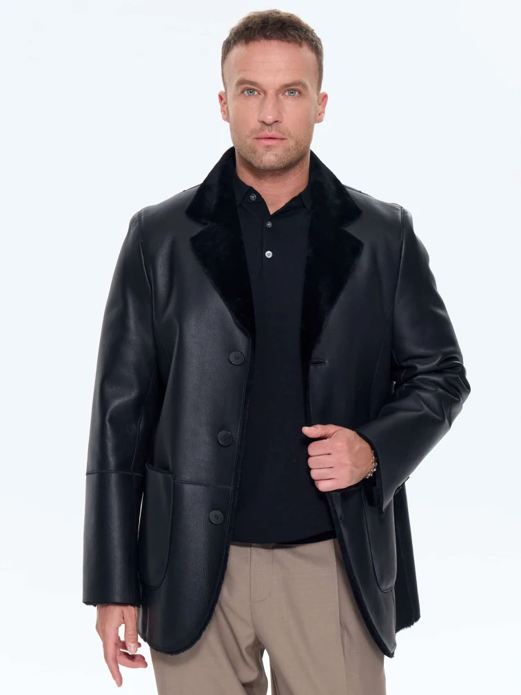 Мужская дубленка пиджак премиум класса 443, черная, размер 50, артикул 41210