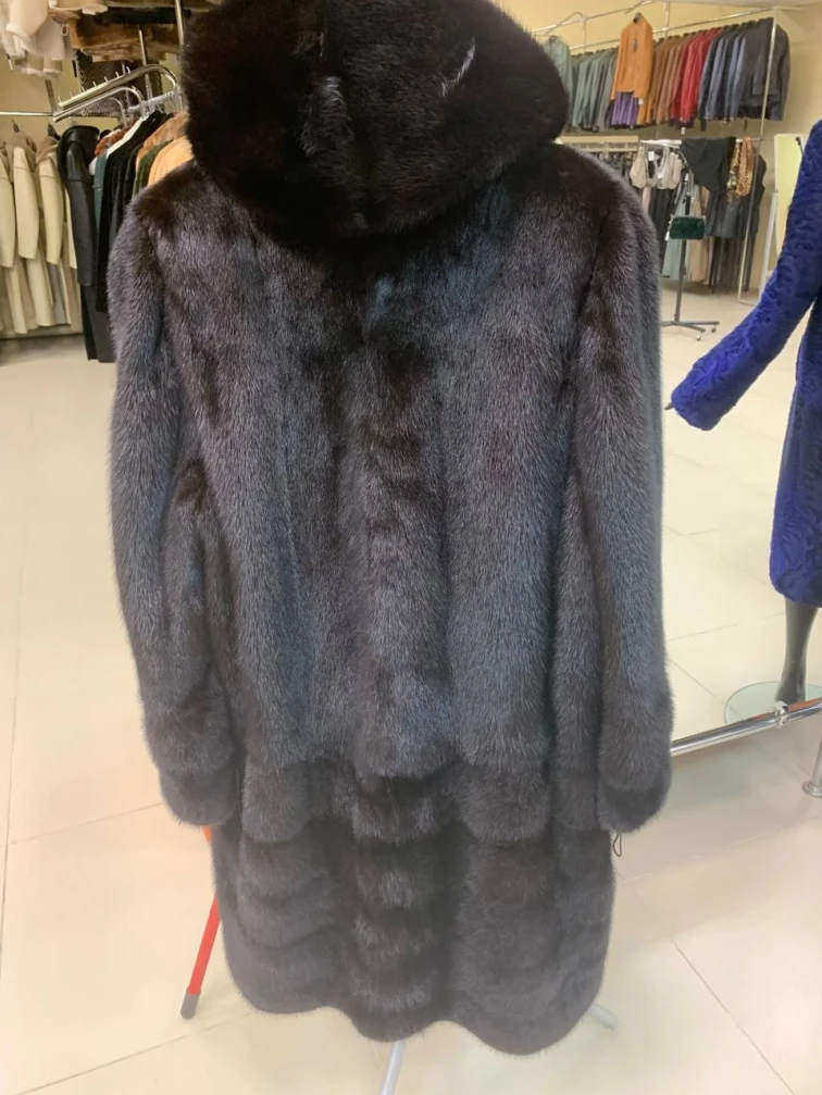 Товар шуба женская из меха норки с капюшоном м-102-1221, коричневая, размер 60, артикул 65430 выполнен из мех норки с застежкой клипсы. Рассчитан на сезон: зима. Длина изделия 110 см, силуэт трапеция.