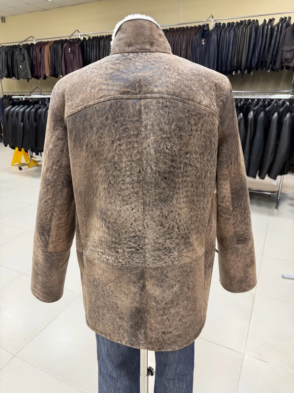 Удлиненная мужская дубленка премиум класса 442, коричневая, размер 50, артикул 29820