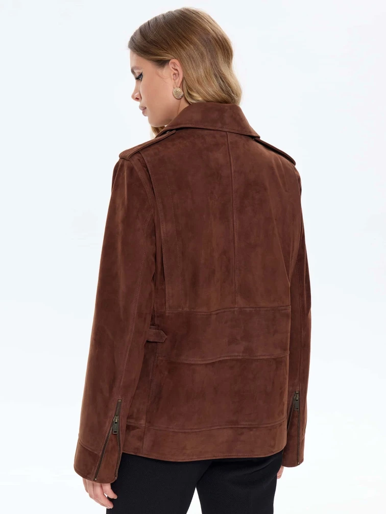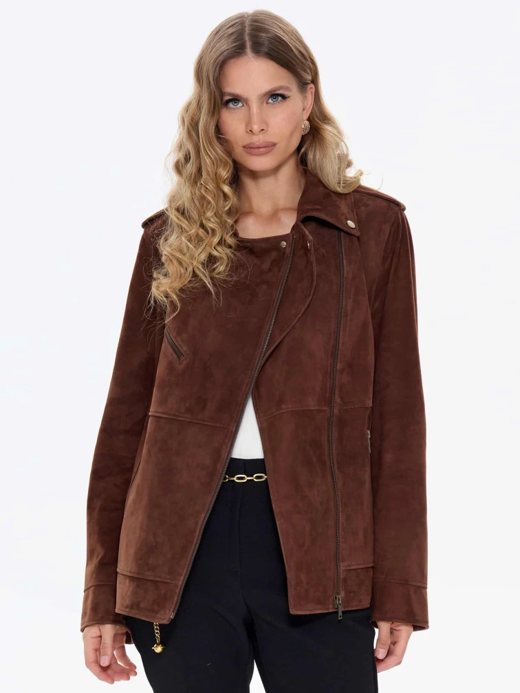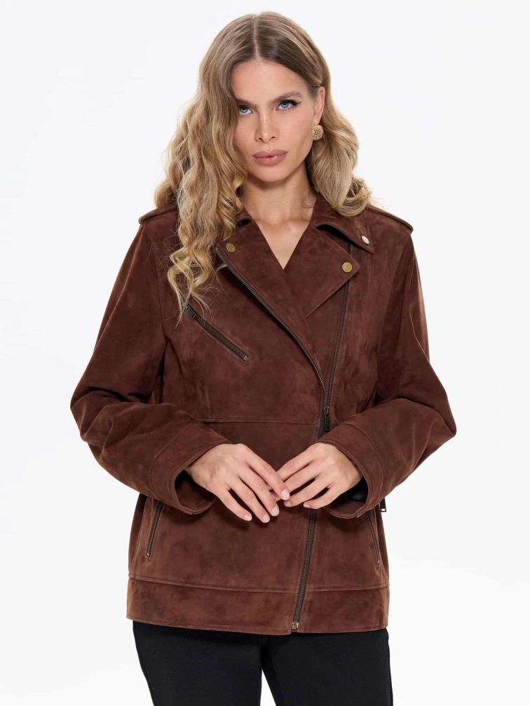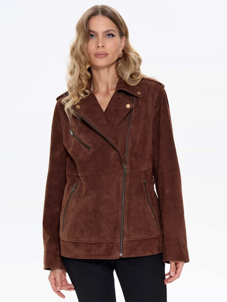 Замшевая женская куртка косуха премиум класса 3079з, коньячная, размер 44, артикул 24710