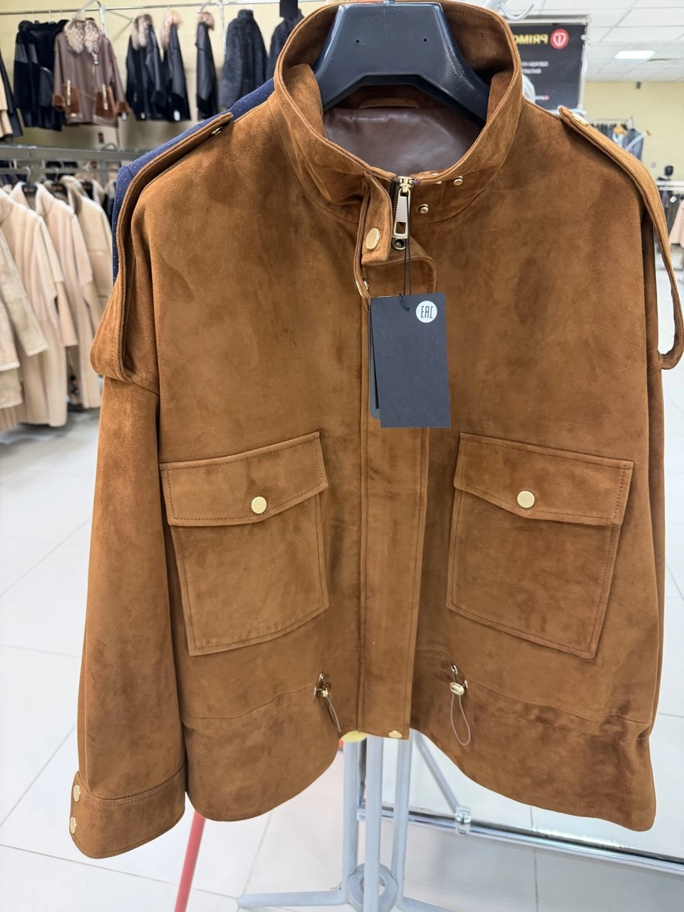 Товар замшевая женская куртка премиум класса 3101з, виски, размер 48, артикул 92420.