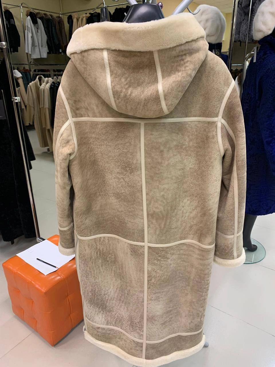 Товар бежевая женская дубленка с капюшоном 2061, размер 42, артикул 65210 выполнен из овчина "мерино" с застежкой молния. Рассчитан на сезон: зима. Длина изделия 105 см, силуэт свободный.