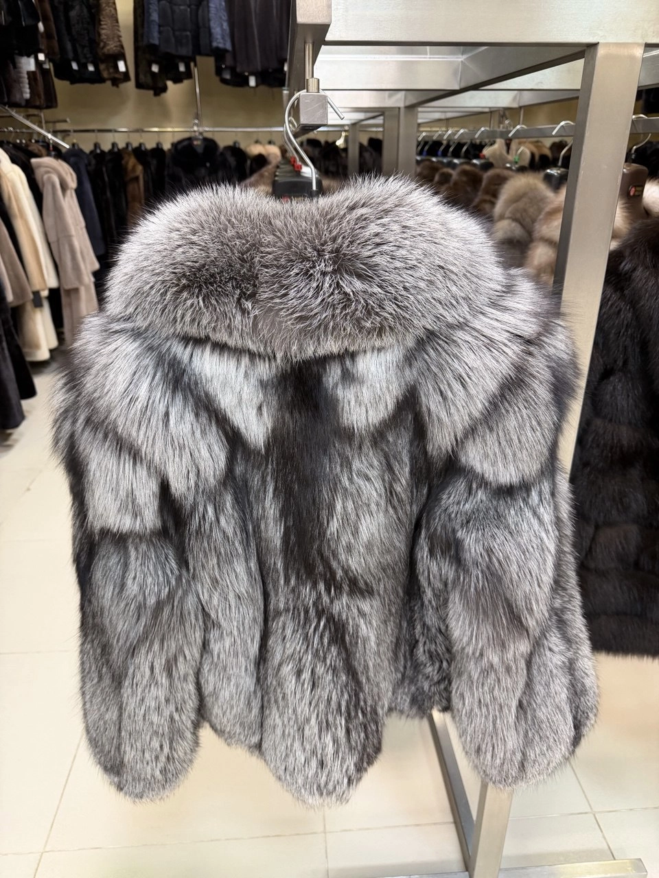 Товар короткая шуба из меха лисы для женщин л1010-010, серебристо-чёрная, размер 48, артикул 65510 выполнен из мех лисы с застежкой клипсы. Рассчитан на сезон: зима. Длина изделия 80 см, силуэт свободный.