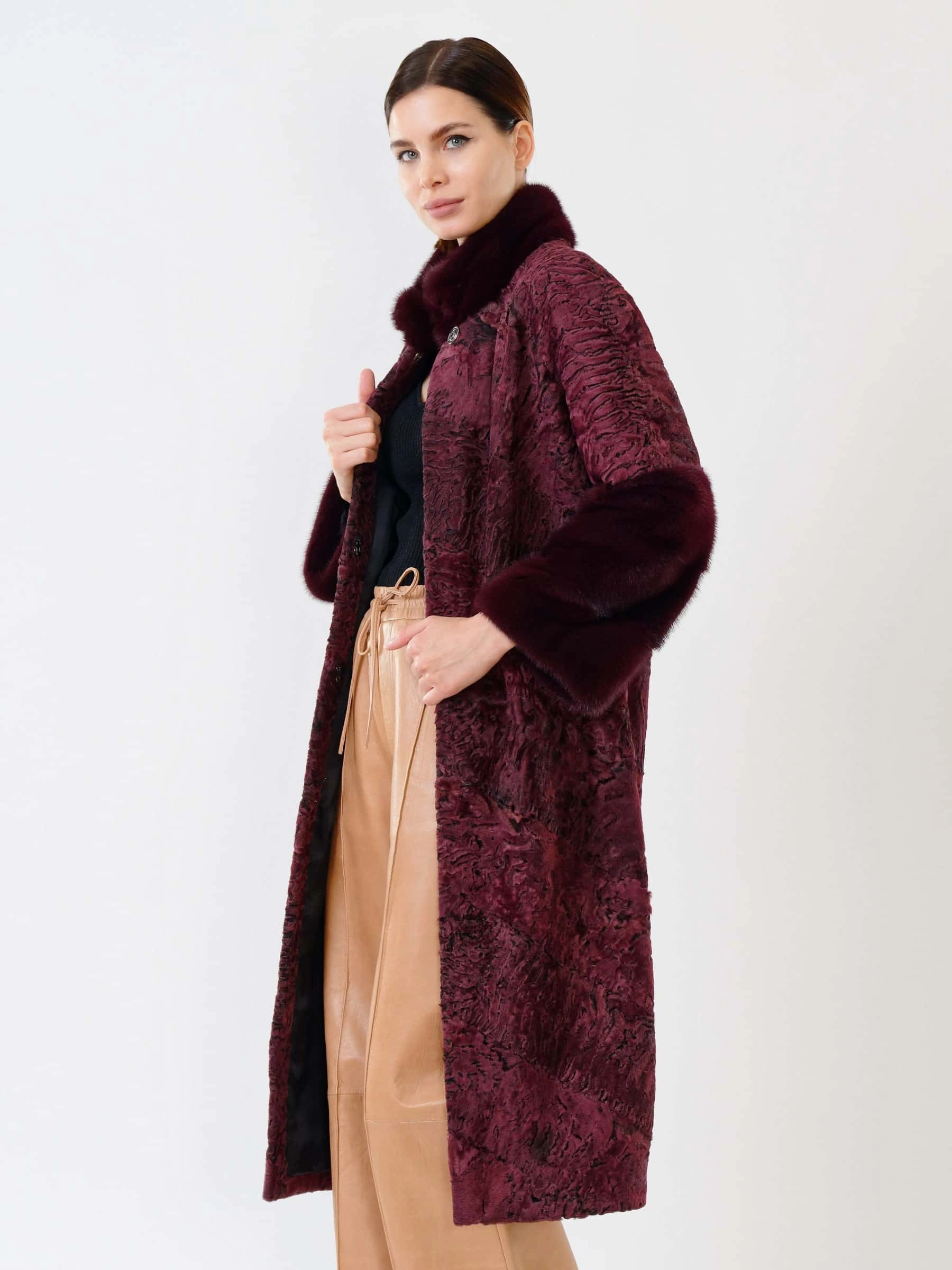 Женская шуба из меха каракуля с мехом норки 17101д(сн), бордовая, размер 44, артикул 22620