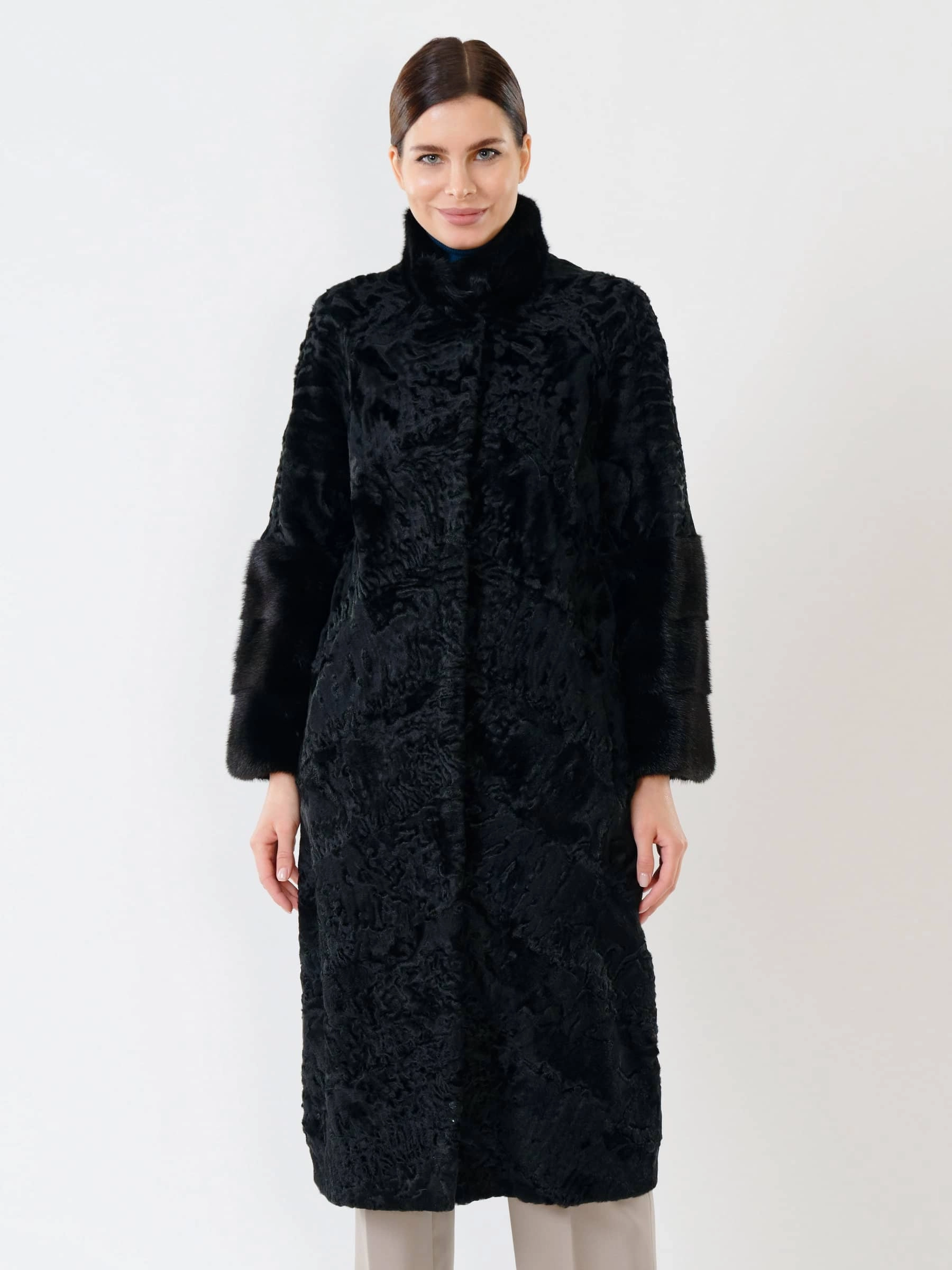 Женская шуба из меха каракуля с мехом норки 17101д(сн), черная, размер 44, артикул 22650