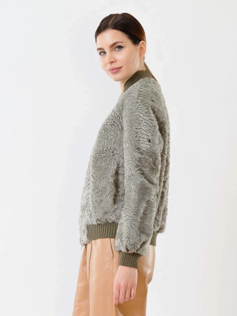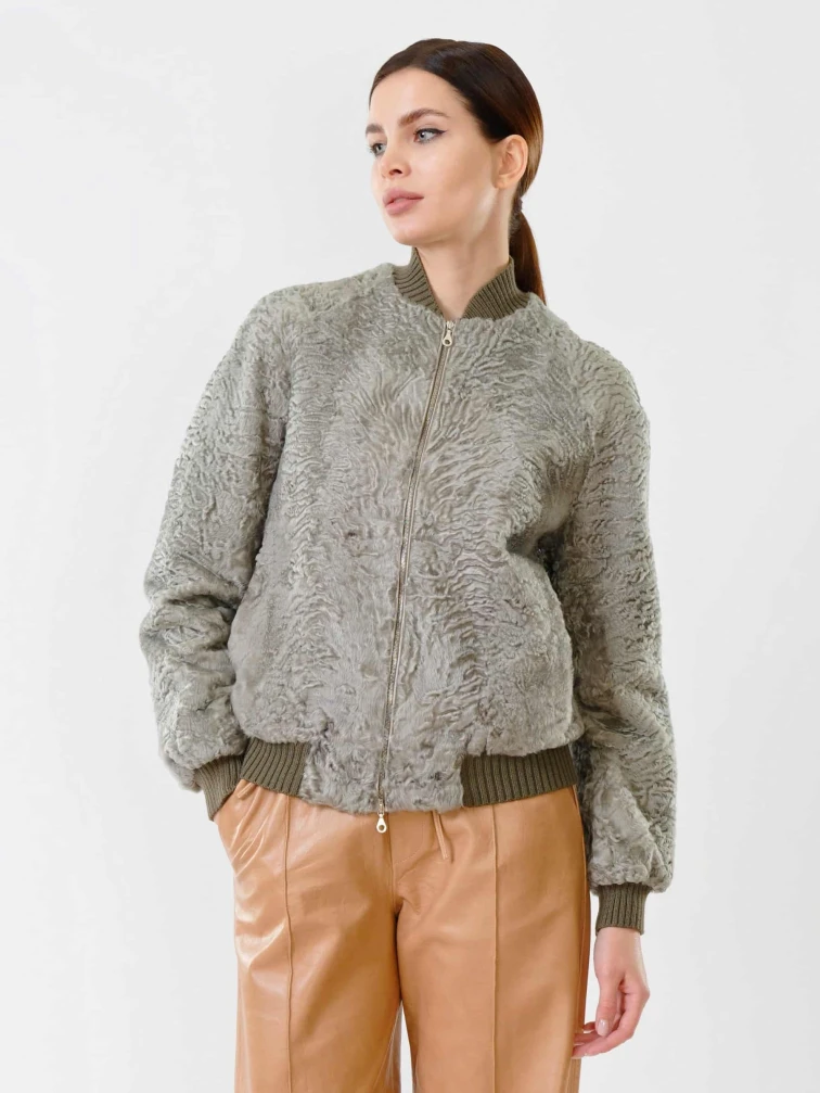Бомбер из афганского каракуля. Тугой плоский завиток волоса каракуля. Великолепное качество меха. Ювелирный подбор шкурок по оттенку и структуре волоса. Безупречная работа портных. Комфортная посадка по фигуре. Выдержано. Стильно. Ничего лишнего. Премиальный уровень.