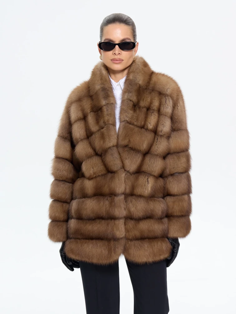 Элегантная шуба из меха куницы премиум-класса длиной 70 см с эффектным V-образным воротником и спущенным рукавом подчеркнет ваш изысканный вкус. Прямой силуэт в светло-коричневом оттенке и скрытые клипсы создают лаконичную элегантность. Стилисты рекомендуют носить эту модель с водолазкой и кожаными брюками для повседневного образа или с платьем-чехлом и сапогами-ботфортами для безупречного вечернего выхода, даря ощущение роскоши и комфорта.