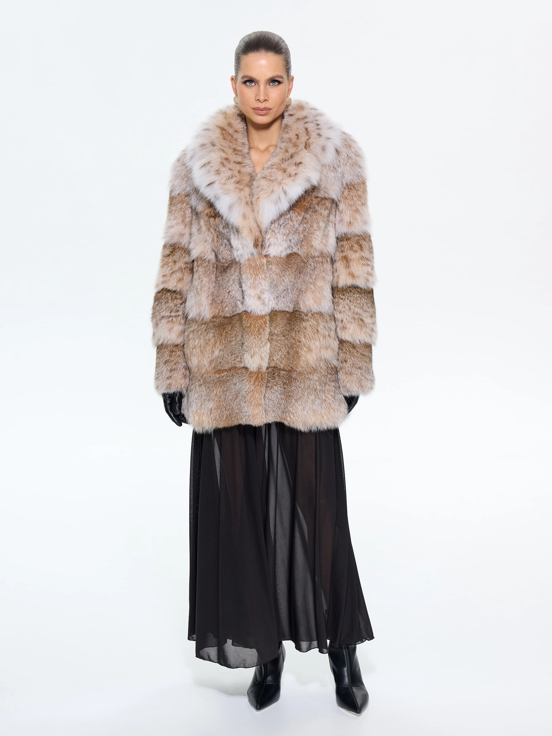 Женская шуба из меха рыси Л850, натуральный, размер 46, артикул 65340