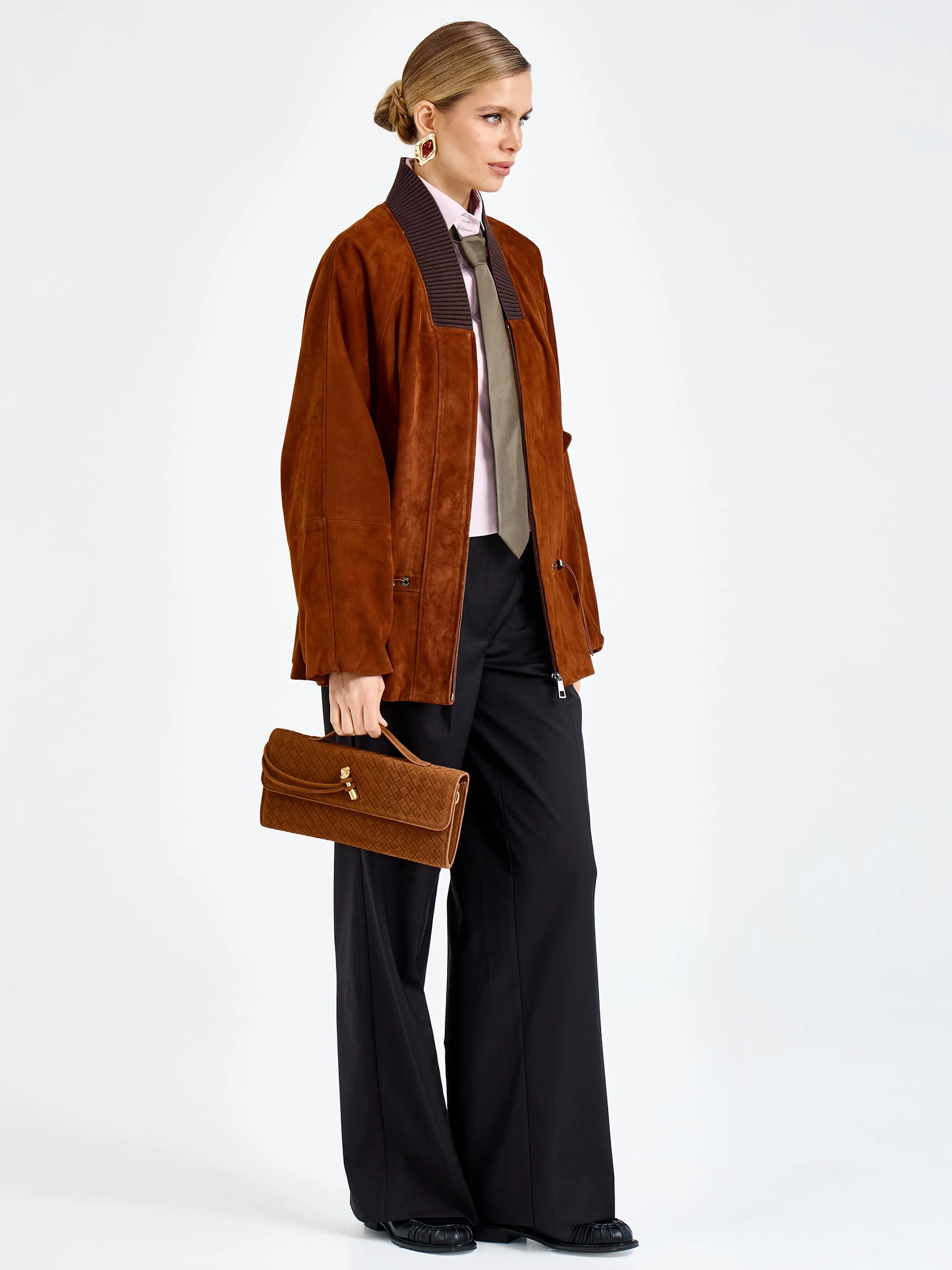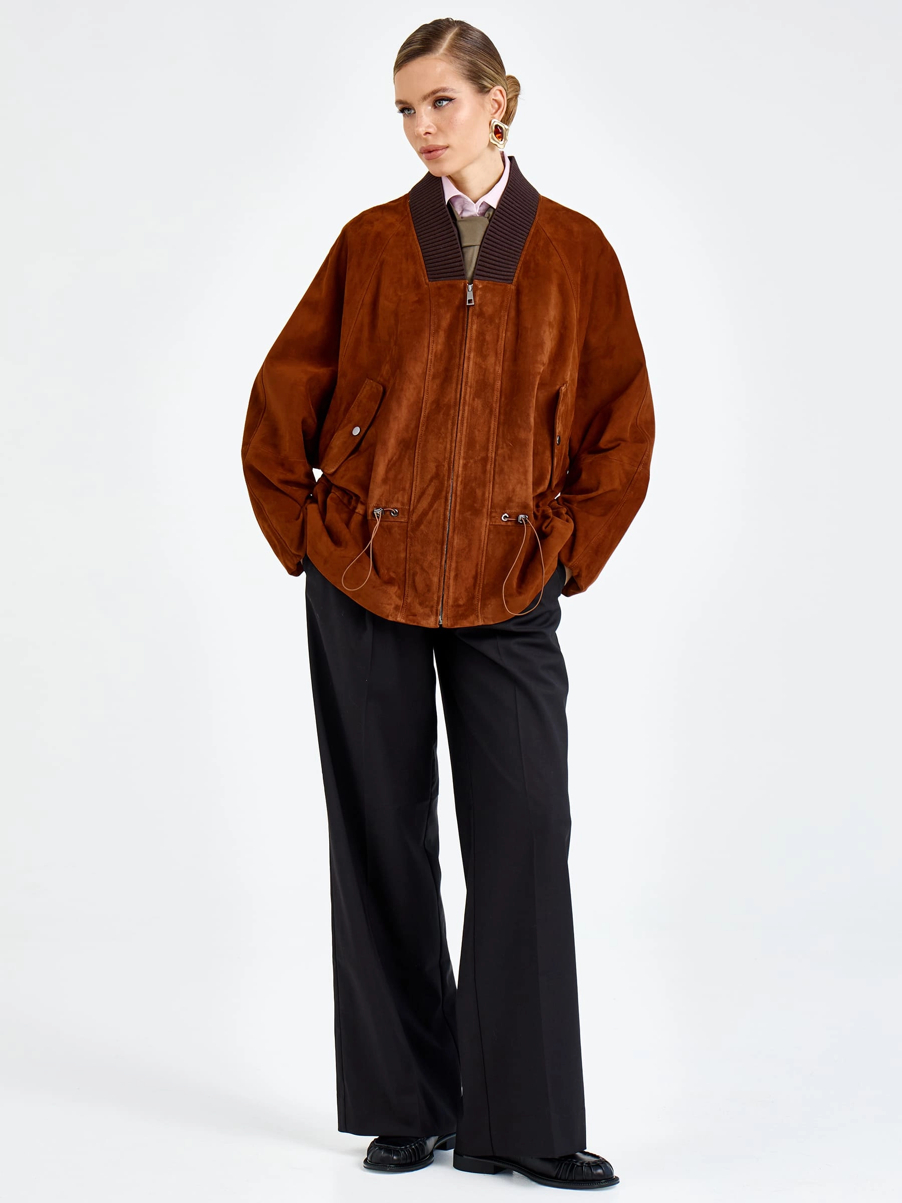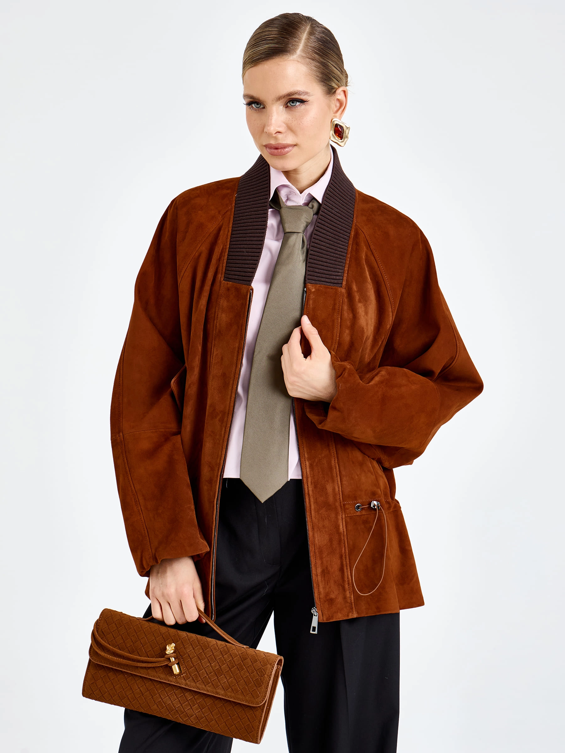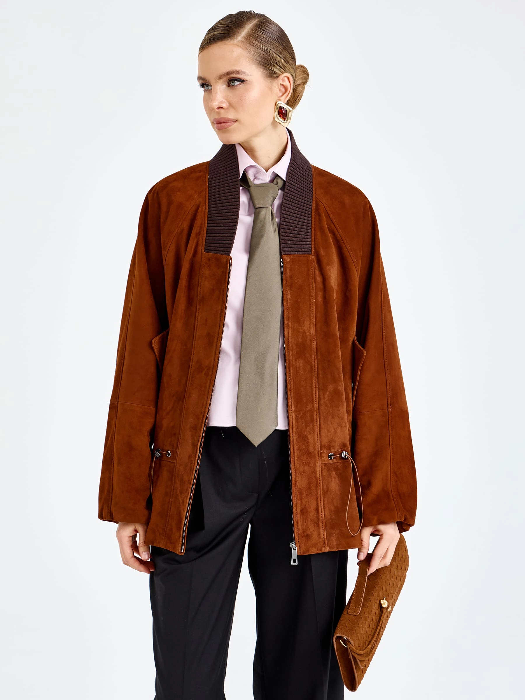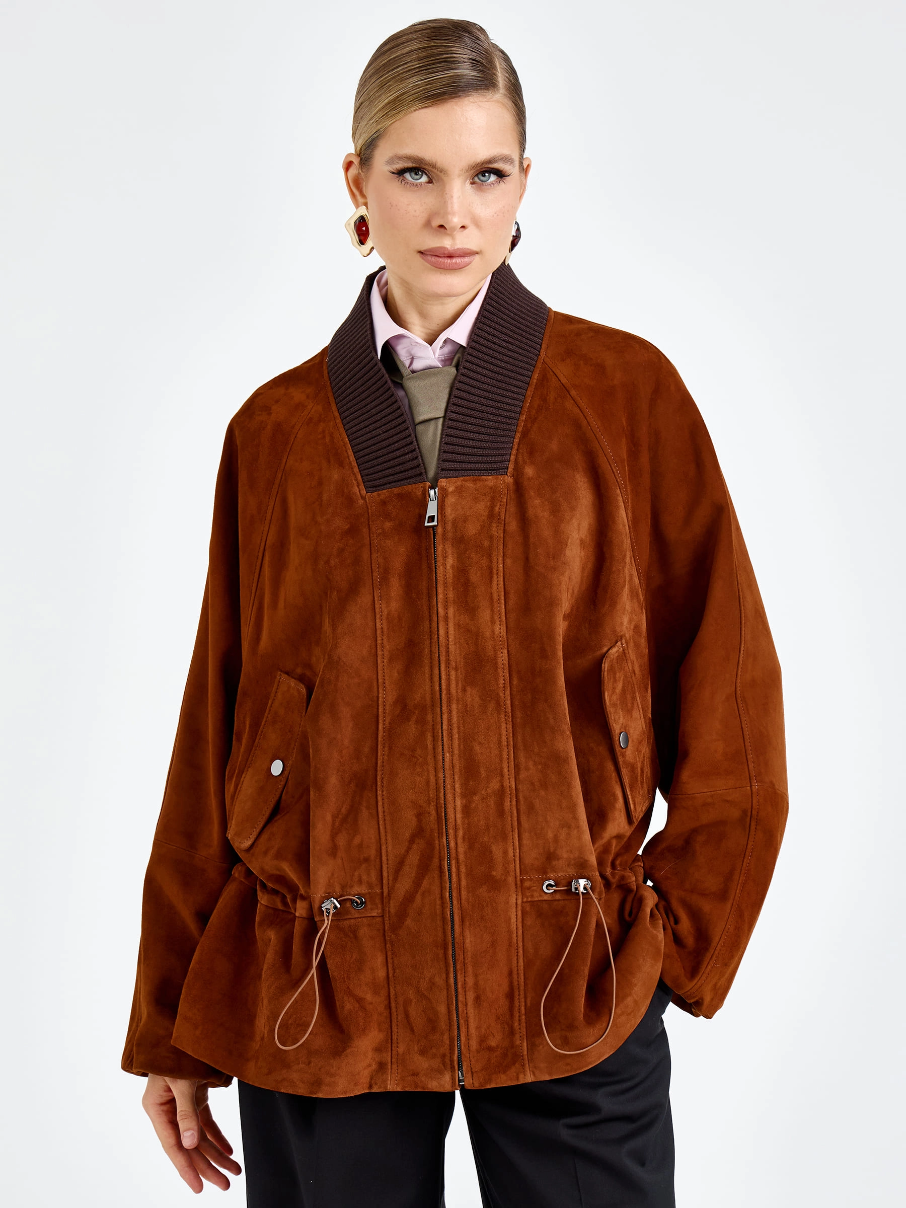 Товар женская замшевая куртка оверсайз премиум класса 3115з, виски, размер 48, артикул 92440.
